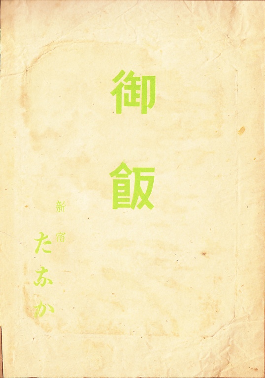 1939(昭和14)年10月30日5時の調製と思われる、昔の新宿駅弁の掛紙。あるいは1925(大正14)年のものだろうか。おそらく特に何かを描いているわけではないと思われる。