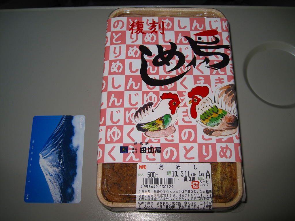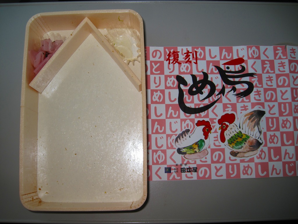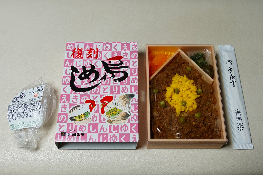 1957(昭和33)年から1991(平成3)年12月までの長い間、新宿の名物駅弁であった田中屋の「鳥めし」を、約10年ぶりに日本レストランエンタプライズ(NRE)が復刻販売したもの。コンコースの駅弁売店ではなく、現在も駅のホーム上でパンやおにぎりを販売するかつての駅弁業者の売店で販売される。