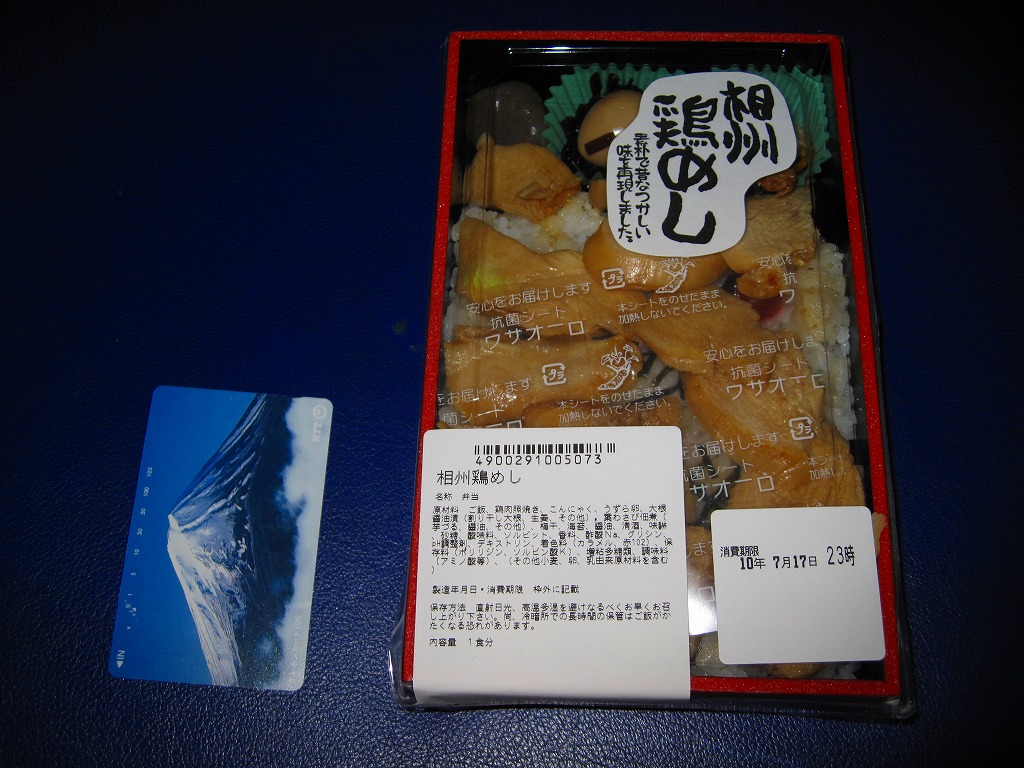 かつて東北上信越方面の旅客でごった返していた上野駅の大屋根の下で営業するこの高級スーパーマーケットチェーンでは、各地の駅弁や駅弁のような弁当も販売しており、ここの商品を駅弁と紹介するブログも少なくない。この商品は見た目に惣菜だが、調製元は小田原駅弁の東華軒であり、「相州」つまり相模という調製元所在地の国名を冠するため、なんとなく駅弁っぽい。味は醤油風味のササミがおいしかった。しかし「相州」の表現は、今では武蔵の国でも相模でもほぼ使われていないと思う。