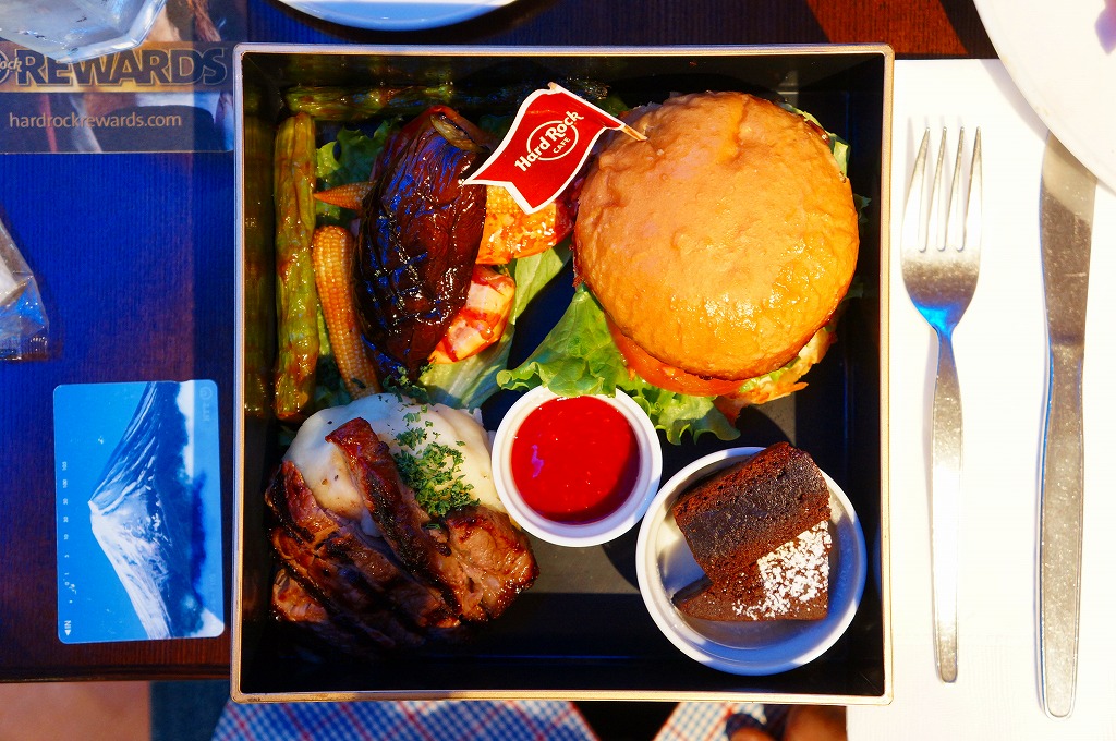 上野駅の駅舎の商業施設「アトレ上野」に入居するレストラン「ハードロックカフェ」が、店舗のリニューアルを記念して2014(平成26)年2月25日から3月3日まで提供した料理。アメリカにもロックの世界にもない「駅弁」を名乗り、駅弁の容器に見立てた真四角のトレーに、ハンバーガー、ビーフステーキ、マッシュポテト、ナスやエビなどの炒め物、チョコレートケーキなどを詰めた。注文販売、持ち帰り不可、注文から提供まで40分もかかるという、おおよそ駅弁らしからぬスタイルではあったが、こんな名前のメニューを出した店舗は、きっと世界中でここだけだろう。
