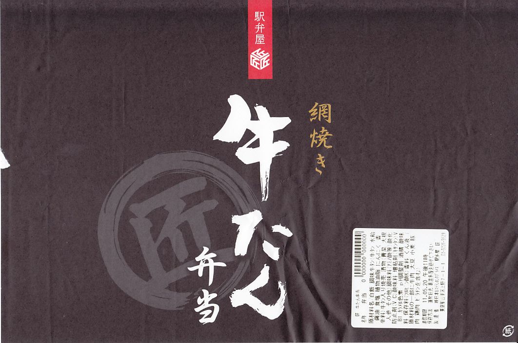 2011(平成23)年3月24日の上野駅商業施設「エキュート上野」内の駅弁売店「駅弁屋 匠」の開業に合わせて発売か。赤いトレーを接着した長方形の容器に透明なふたをして、商品名と店舗名を描いた黒い掛紙を巻く。中身は白御飯の上に牛タンを貼り付け、焼売と漬物を添えたもの。牛タンはどう見ても網焼きには見えないが、薄いなりに分量はあり、コショウの味付けが御飯に合う。仙台駅の名物駅弁と名称が一字一句違わないのは気になる。今回は200円引きの1,000円で買えた。現存しない模様。