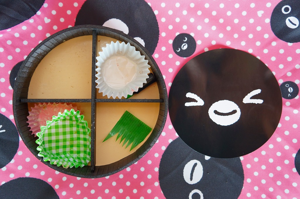 そんな中身は、古風なタイプの幕の内駅弁で、かつて東京駅で「駅弁の日記念弁当」などの名で売られた記念駅弁と、だいたい同じ。掛紙と、3種類のうちひとつがついてくる添付のめんこに、怪獣絵師の開田裕治が描いた、ウルトラマンシリーズのイラストが使われた。