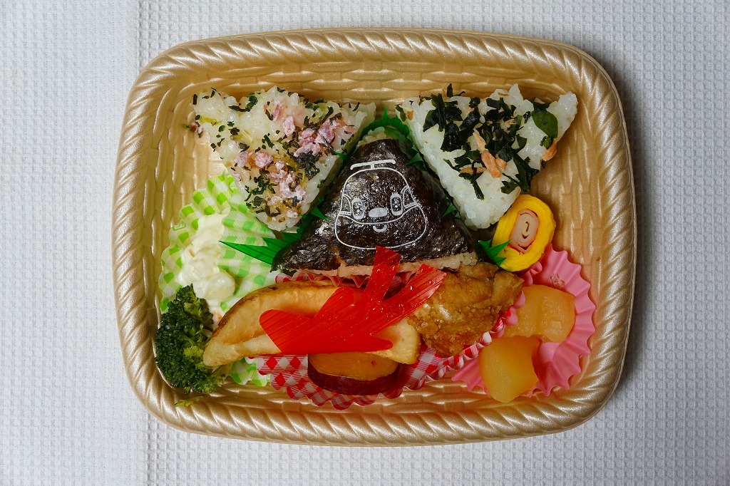 弁当ととらえれば容器も中身もしょぼい感じだが、記念駅弁、キャラクター駅弁ととらえれば楽しい内容。ビニールタイプのきんちゃく袋にも様々な表情の丸顔を描く様は、駅弁趣味者として記録と手元に残しておく必要がある。実際に発売がネット上で告知ないし紹介されると話題になり、売り切れが早くなかなか買えなかった模様。