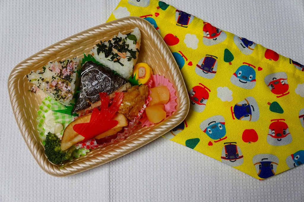 2017(平成29)年10月14日から、東京、新宿、上野、大宮の各駅と鉄道博物館で2万個を販売。JR東日本の子会社の広告代理店と出版社が、2015(平成27)年12月から展開するキャラクターのお弁当。東京駅弁「ポケモン弁当」の最近5年間くらいの姿と同じような、レモンイエロー色のきんちゃく袋には、そのキャラクターがたくさん描かれる。