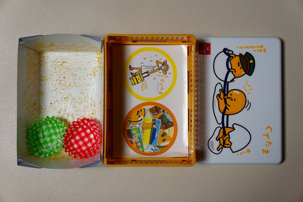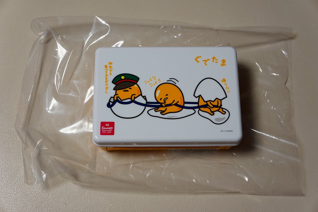 2015(平成27)年8月までに発売か。JR東日本リテールの東京駅、上野駅、大宮駅、品川駅、蒲田駅の弁当売店「膳まい」と、東京駅構内の土産物店「東京百貨」での販売。これらの売店で取り扱われる新幹線容器の駅弁と同じ構造をした、プラ製の折り畳み式容器には、サンリオのキャラクター「ぐでたま」が、鉄道の制帽や旅先で食べる表現を取り入れて描かれる。