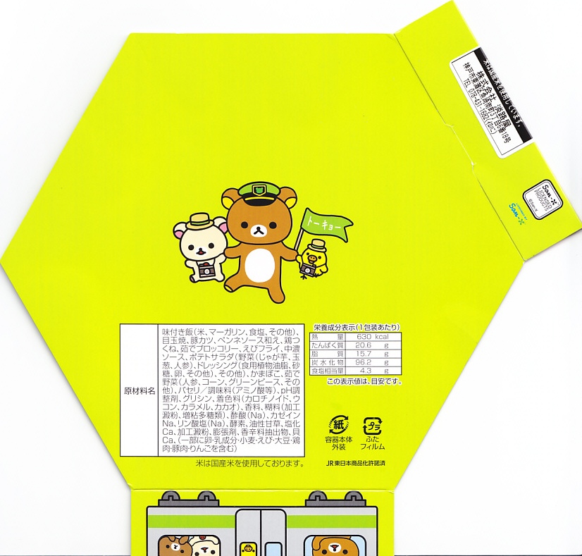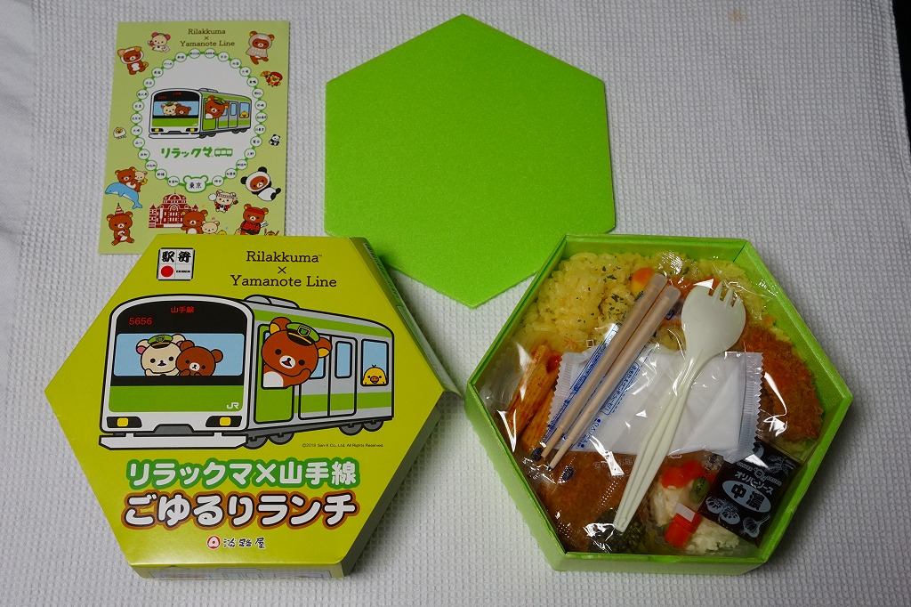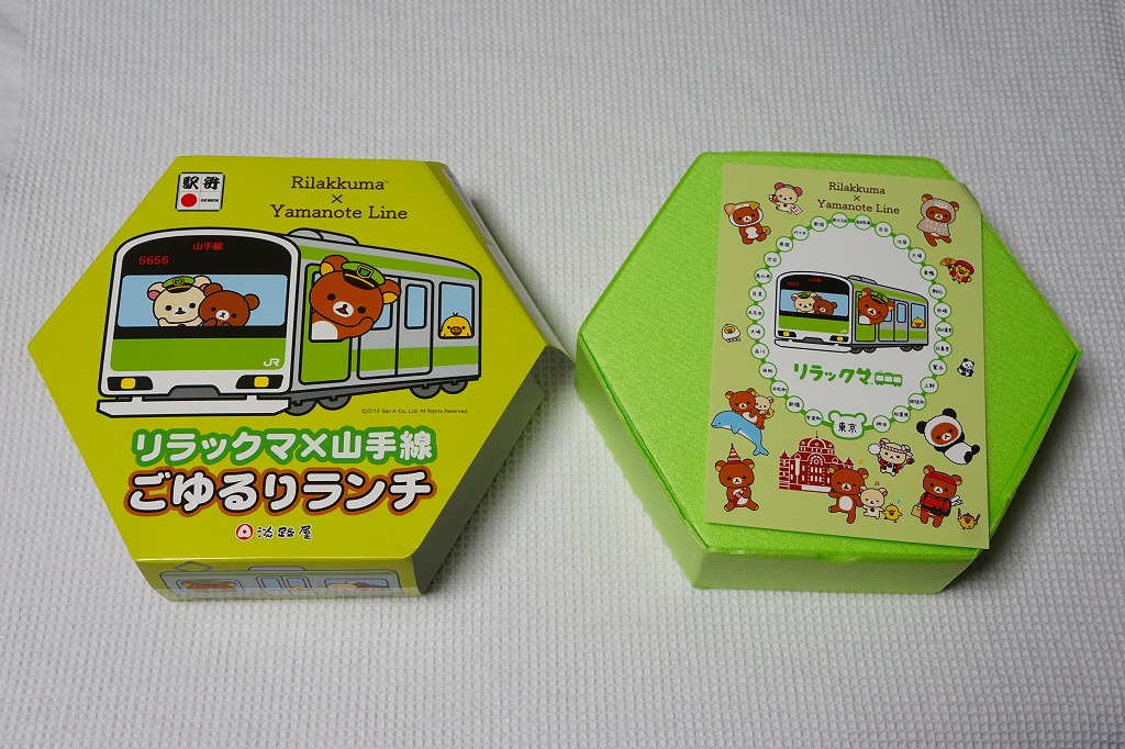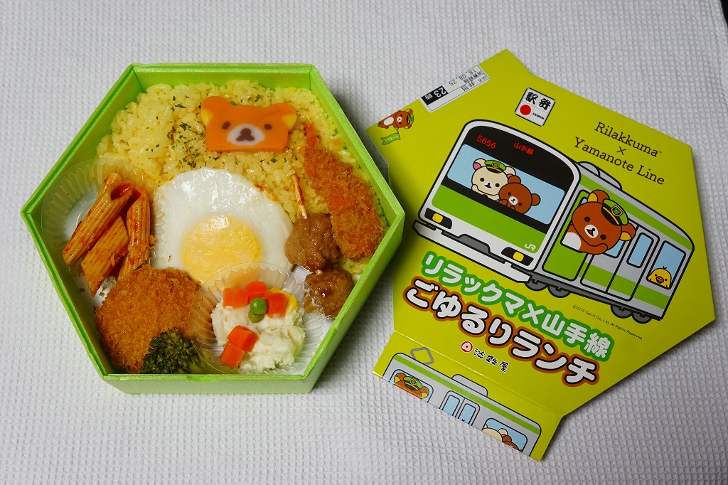 正八角形の容器と、駅弁の名前のとおりリラックマと山手線を描くスリーブは、JR山手線の色であるウグイス色(黄緑色)をしている。中身はマーガリン飯、目玉焼き、とんかつ、ペンネ、鶏つくね、ブロッコリー、エビフライ、ポテトサラダなどのお子様ランチ。山手線の環状運転にちなみ、丸い食べ物を多用したそうな。2020年1月までの販売。