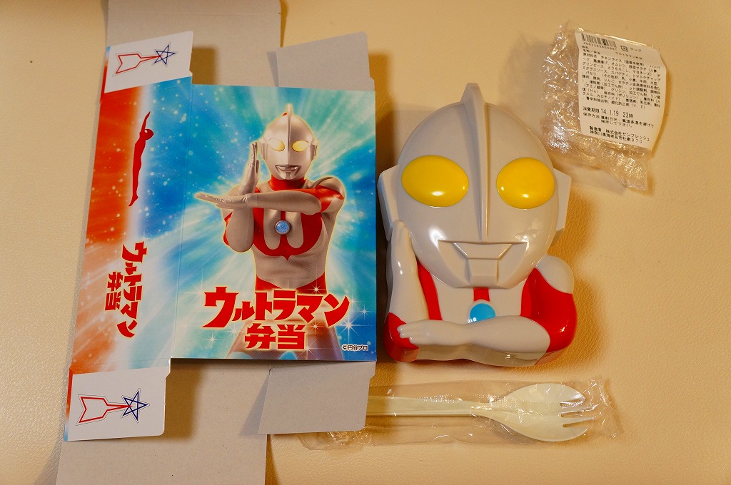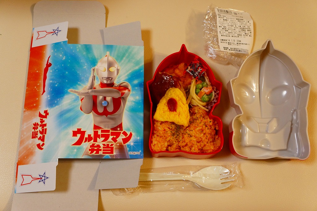 2012(平成24)年12月28日に東京駅の売店「東京百貨」でデビューか。ウルトラマンが必殺技であるスペシウム光線を放つ時の姿を描いたパッケージに、その姿をデフォルメしたプラ容器を収める。中身はチキンライスにオムレツ、ハンバーグ、鶏唐揚、スパゲティ、ミックスベジタブルを添える、冷凍食品を多用した感じのお子様ランチ。この容器で千円を切るのは、キャラクター駅弁としては安価。2015年までの販売か。