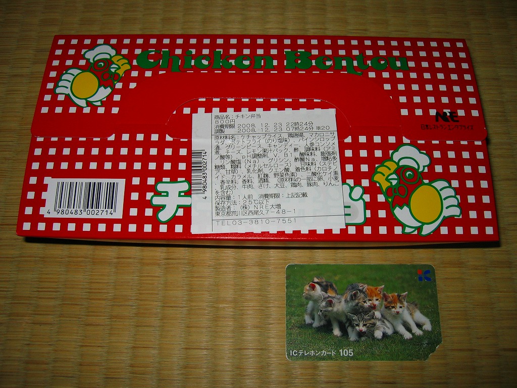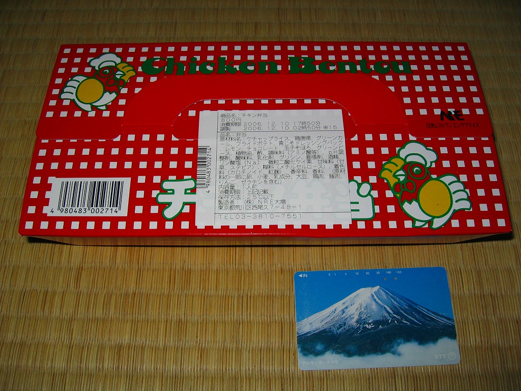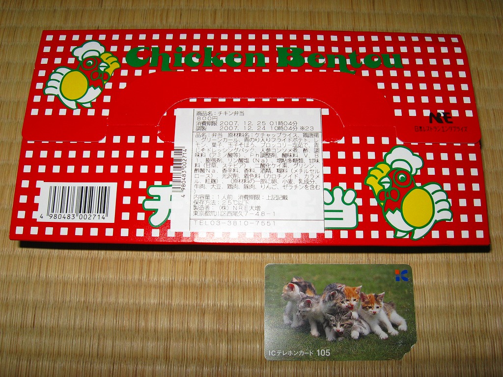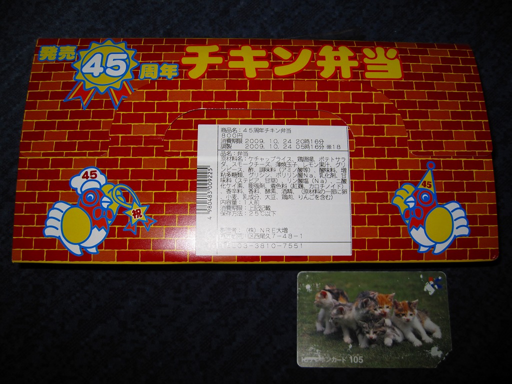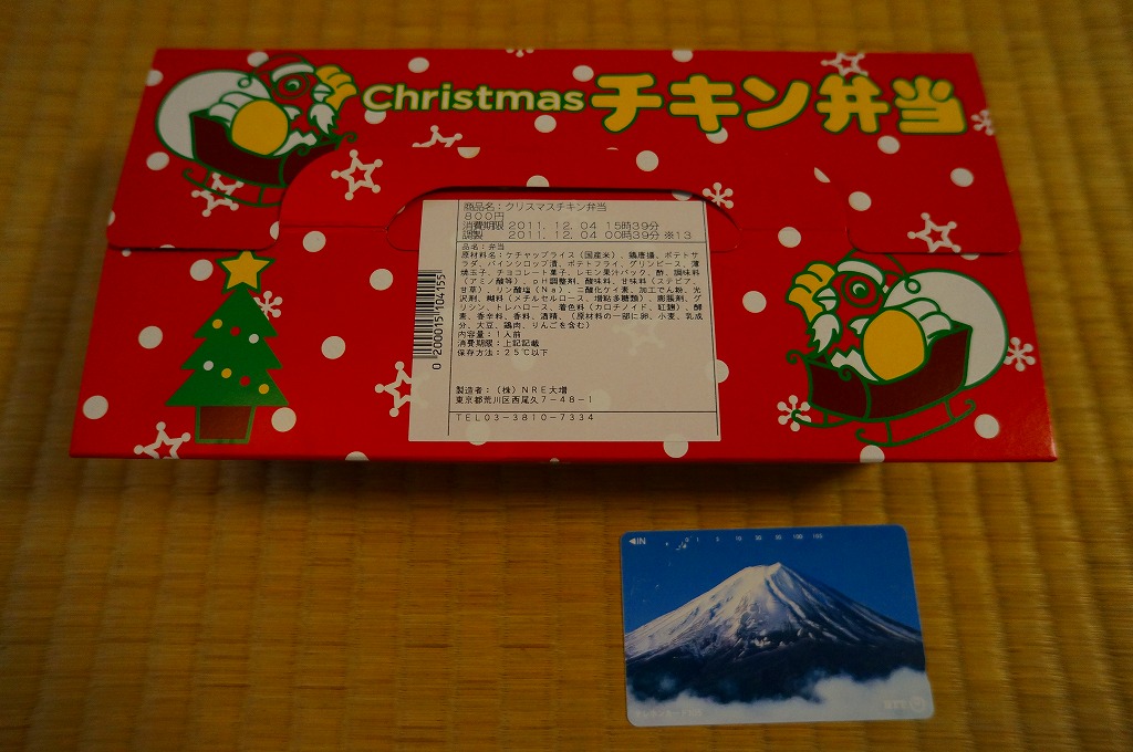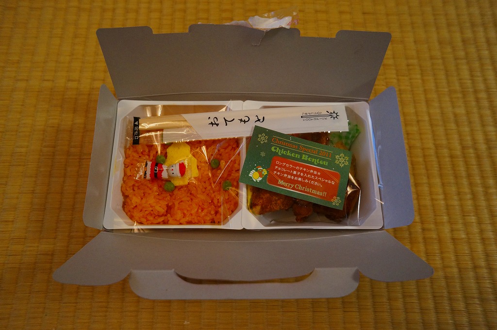 チキン弁当クリスマスバージョンの2011(平成23)年版で、今回は1日から25日までの販売。今回はクリスマスカードが復活、それ以外は前年と同じ。