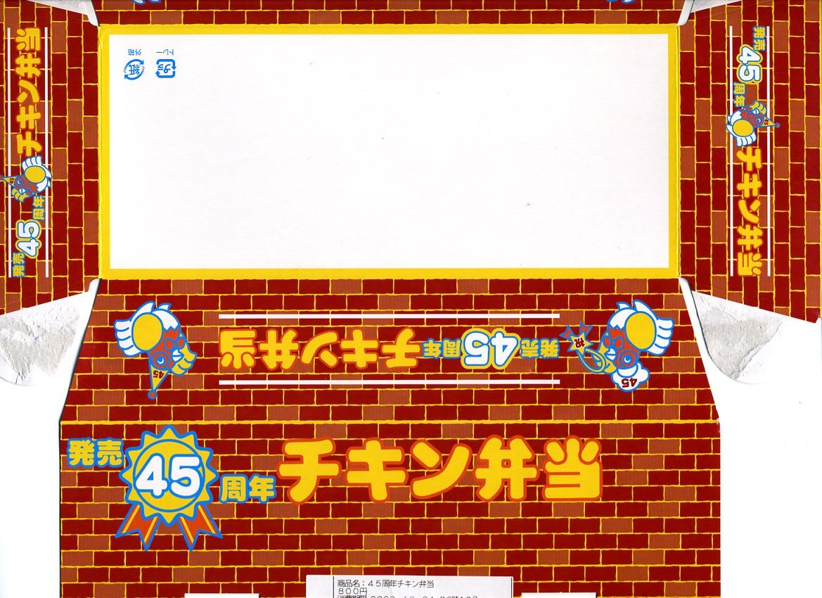 2009(平成21)年10月24、25日に東京駅で開催された「第10回東日本縦断駅弁大会」で販売された、商品名どおりチキン弁当の発売45周年を記念する駅弁。いつもの形の容器に「発売45周年」の文字を加え、ニワトリの帽子の頭にも45の文字を追加し、地柄を赤煉瓦に差し替え、同じ絵柄のストラップを添付する。