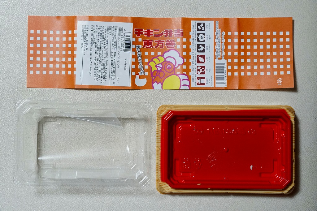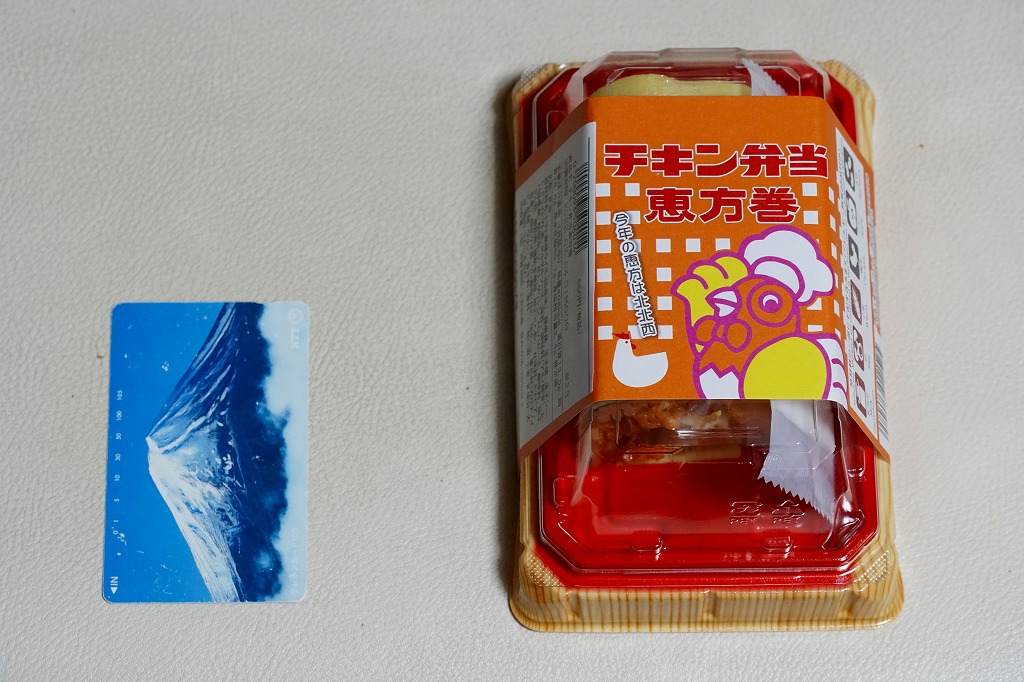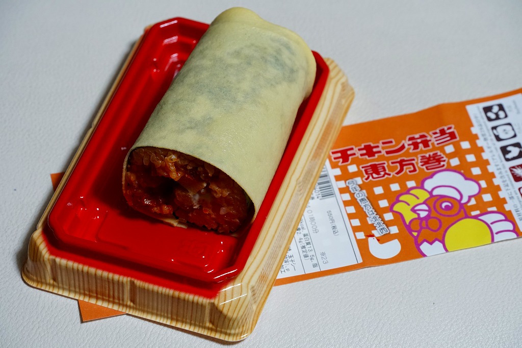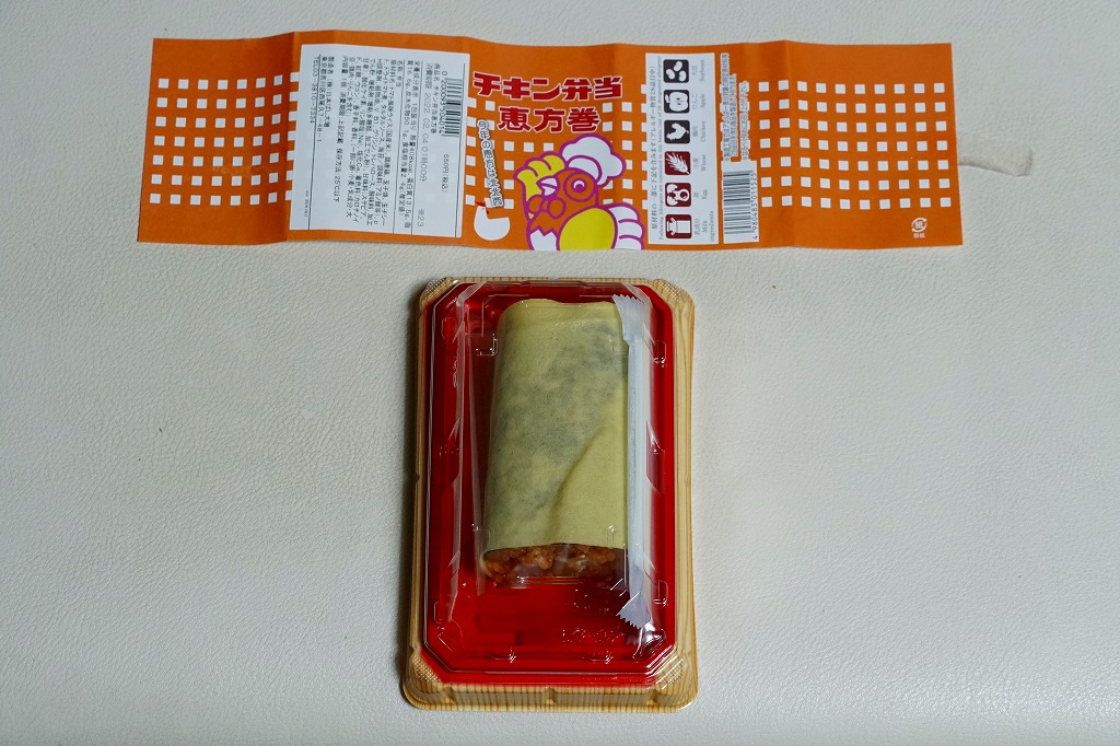 2019(平成31)年2月3日に500円で発売、2020年も2月3日に販売、2021年の販売はなく、2022年は2月3日に550円で販売。2000年代に節分での販売が定着し、駅弁でも各地で出ている恵方巻きについて、東京駅の名物駅弁「チキン弁当」のものが作られた。トマト風味ライス、鶏唐揚、ドライトマト、タルタルソースを、海苔と玉子焼のシートで二重に巻いた、小柄な太巻きを1本、プラ製トレーに収め、掛紙を巻く。掛紙の絵柄と具材が、現行の駅弁から取り入れられている。掛紙の絵柄は毎回変わり、今回は今と昔のバスケットに描いた名無しのニワトリが競演する。2023年からは駅弁の名前でなく、日本ばし大増や大船軒の調製元ブランドを名乗る恵方巻に切り替わった。
