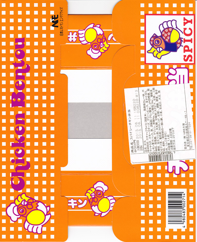 2013(平成25)年8月9日から18日まで、東京駅の駅弁売店「駅弁屋 祭」で開催された、「「駅弁屋 祭」開店1周年記念駅弁大会」の期間限定商品3種類のうちのひとつ。見た目も値段も通常版のチキン弁当と変わらないが、鶏唐揚をスパイシーにしたといい、パッケージにも「SPICY」と名乗る赤い服のチキンがシールで貼られる。その鶏唐揚は、中辛のレトルトカレーが限界という刺激に弱い舌でも、スパイシーとは感じないレベルのカレー味だった。