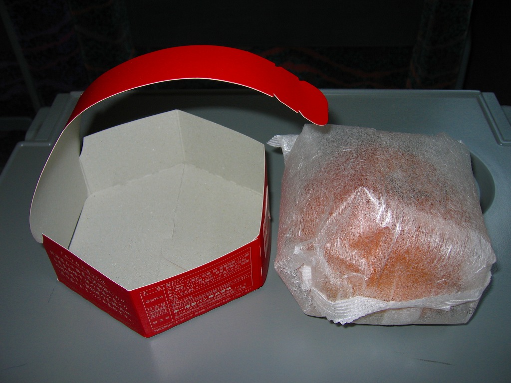 ここでは200円だったが、コンビニでは168円の商品らしい。駅にコンビニが入ることが当たり前になった昨今、菓子パンは簡単に買えるようになったし、従来型のキヨスクでも昔から販売商品のひとつであったが、こういう少々の過剰包装があると、駅弁とは言えないまでも駅売り食品として格が上がると思う。購入した年に終売か。