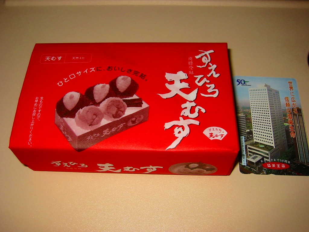 包装は土産物風で、小さなボール紙容器を包装紙で包装する。中身はひとくちサイズの天然海老天ぷらのおむすびが5個。味は良いがこの分量でこの価格はなかなか高価で、実は高級弁当。横浜のスーパーで購入したが販売箇所に東京駅構内が入っていたので、ここで紹介。