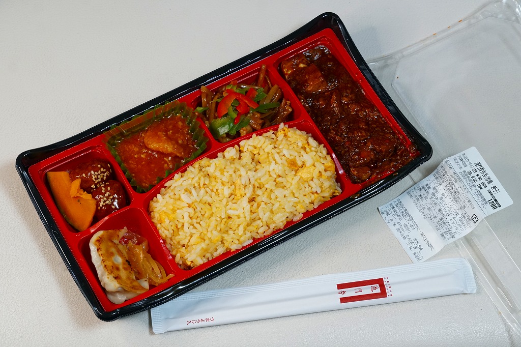 東京駅の商業施設「グランスタ」地下1階に入居するテナント「過門香(かもんか)」で買えた惣菜弁当。平たく浅く二重底な長方形のプラ容器に、炒飯、麻婆豆腐、チンジャオロース、甘酢肉団子、エビチリ、餃子、くらげ冷菜を薄く盛り付ける。駅弁にはとてもみえないが、現地では東京駅限定のお弁当として電飾広告で宣伝されており、東京駅弁と紹介するネットメディアもある。高めの価格は駅弁らしい中華弁当。調製元は東京日本橋の外食事業者が2000年から東京都心でチェーン展開する中国料理店。調製元が2024年1月5日限りで東京駅から撤退し、今は駅では買えない。