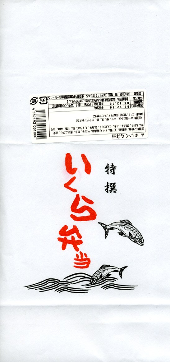 経験的に駅弁屋の調製ではない東京駅弁は、運搬中にビニール袋の中で転倒する確率が高い。これもその被害に遭い、気が付いたら容器が横に立っていて、大粒いくらが煮物や容器の隙間に飛散した。こういう気遣いに駅弁屋とそれ以外との差が出る。中身の見た目は悲惨だが、風味は散らし弁当になって乙なものだった。おかずもていねいに作られていた。現存しない模様。