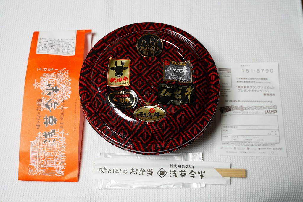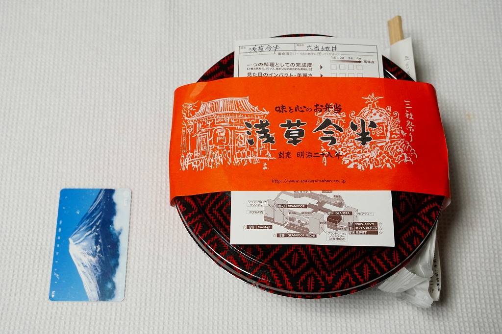 東京駅の商業施設「グランスタ」の地階食品売り場のテナントで、東京駅限定という宣伝を見て購入した牛肉弁当。しかしこの商品は「浅草田甫(たんぼ)草津亭」の名で都内などのデパ地下に展開する店舗で、普通に売っている模様。