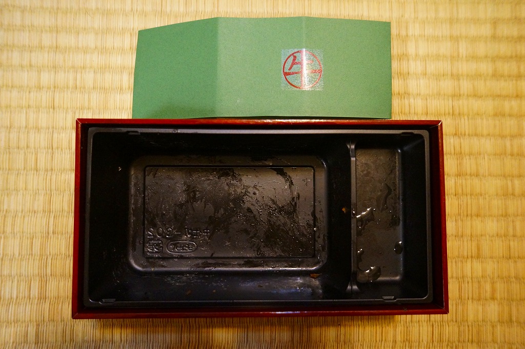 価格は実に約1万円。この店舗ではもちろん、お弁当ストリートで最も高価な弁当として、開店時にテレビなどで取り上げられた。駅弁のような作り置きでなく、注文後に肉を焼き始める惣菜なので、売れ残って困ることはなさそうだが、いったい一日で何個くらい売れるのだろうか。1万円の弁当をその場で買う客がいるとは、東京は大都会だ。味はおいしかった。このクラスやレベルに触れることは、なかなかないので。価格は2012年の発売時で9,600円、2017年の購入時で9,980円。