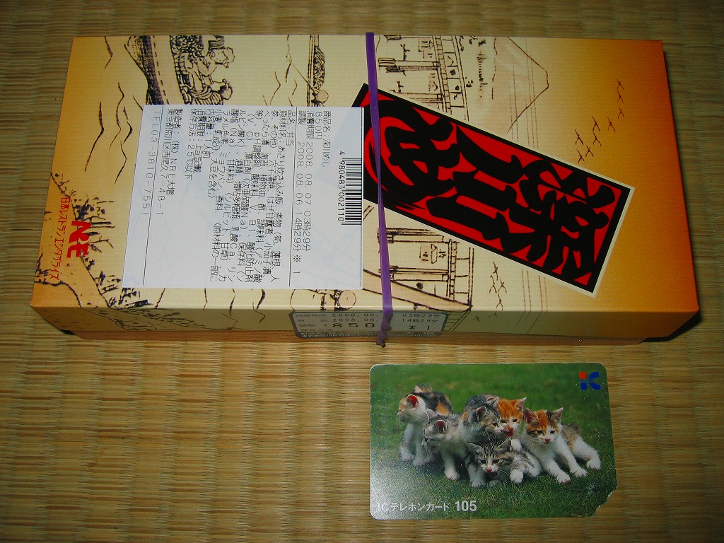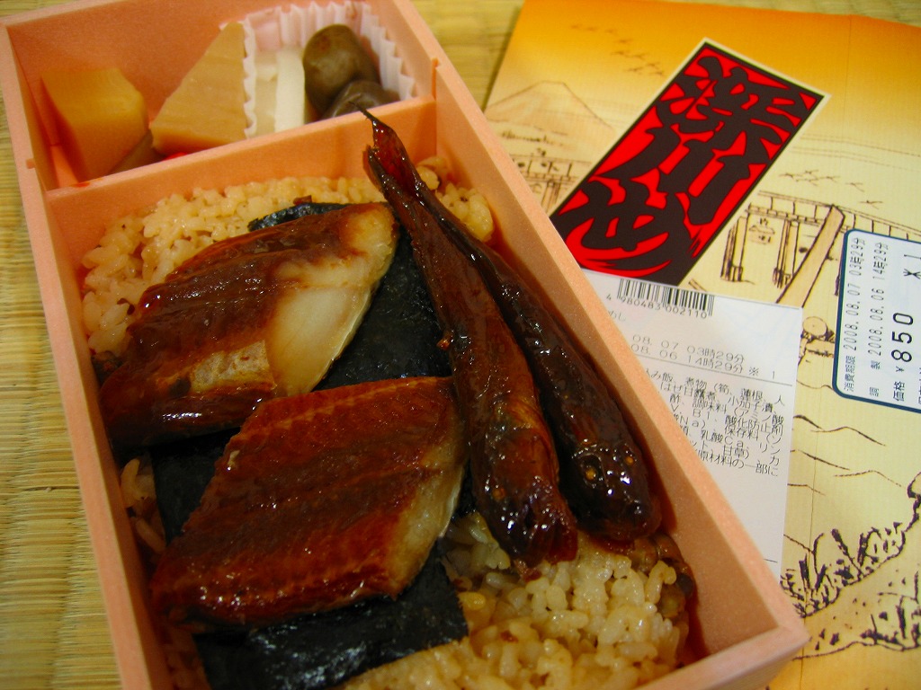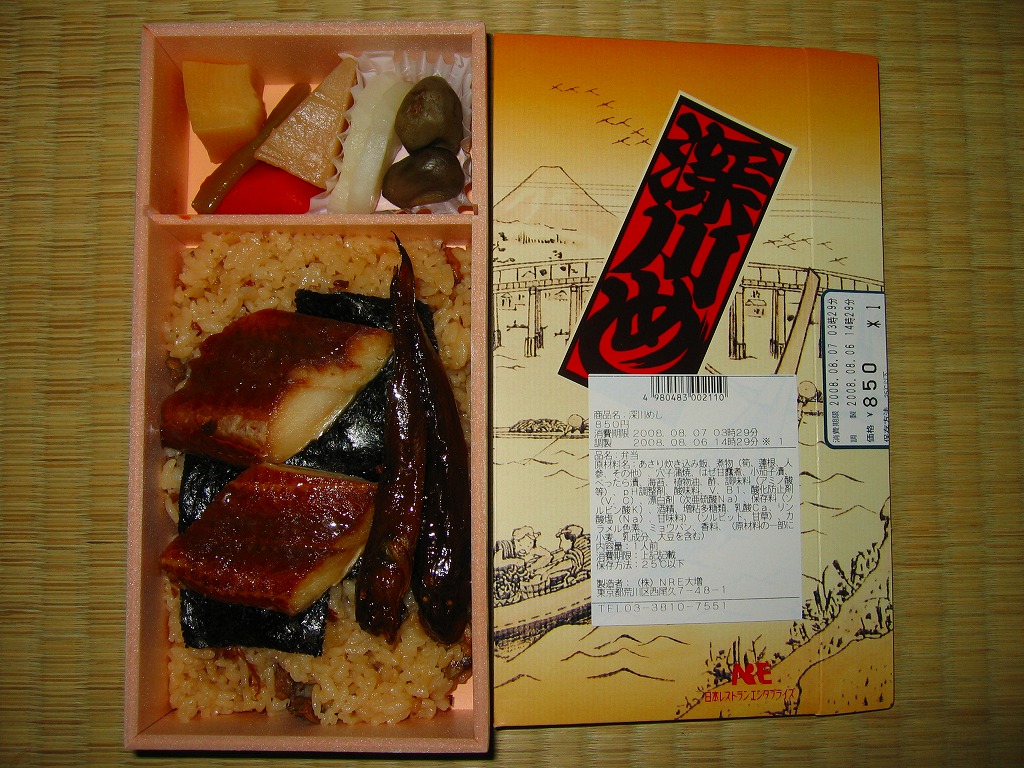 2008(平成20)年8月6日に購入した、東京駅弁のボール紙製パッケージ。上記の2012年時点のものと価格も中身も同じで、駅弁マークの有無だけが異なる。