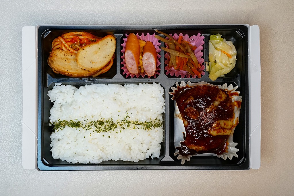 2020(令和2)年3月14日に、「一流料理人が作るバリュー弁当」の触れ込みで、「幕の内弁当」「海苔弁当」「焼肉弁当」とこの「ハンバーグ弁当」の4種類が、赤いパッケージと940円で発売されたもの。これは「1959年創業「ブッツ・デリカデッセン」のこだわりハンバーグ」なのだとか。白飯、ハンバーグ、フライドポテトとスパゲティ、コーンとウインナー、きんぴらごぼう、キャベツ炒めを詰めた、まるで幕の内弁当のようなハンバーグ弁当。調製元は東京都近郊の各地に「ブッツ・デリカデッセン」などの惣菜店を出す営業者そのもので、監修でなく調製で駅弁にかかわっている。2021年限りでシリーズごと、ひっそりと終売か。