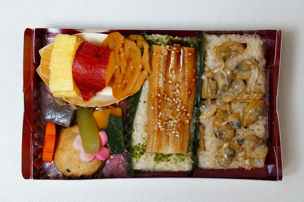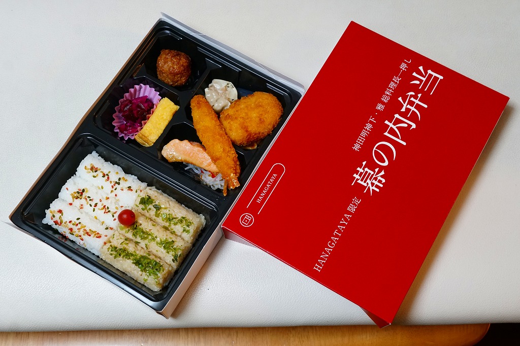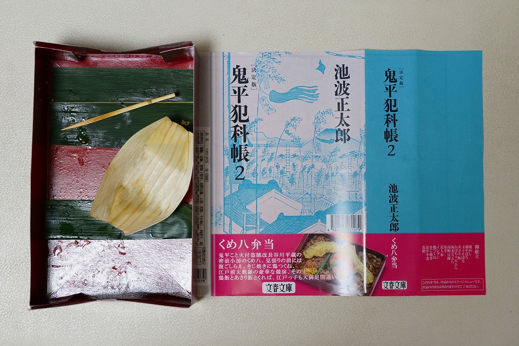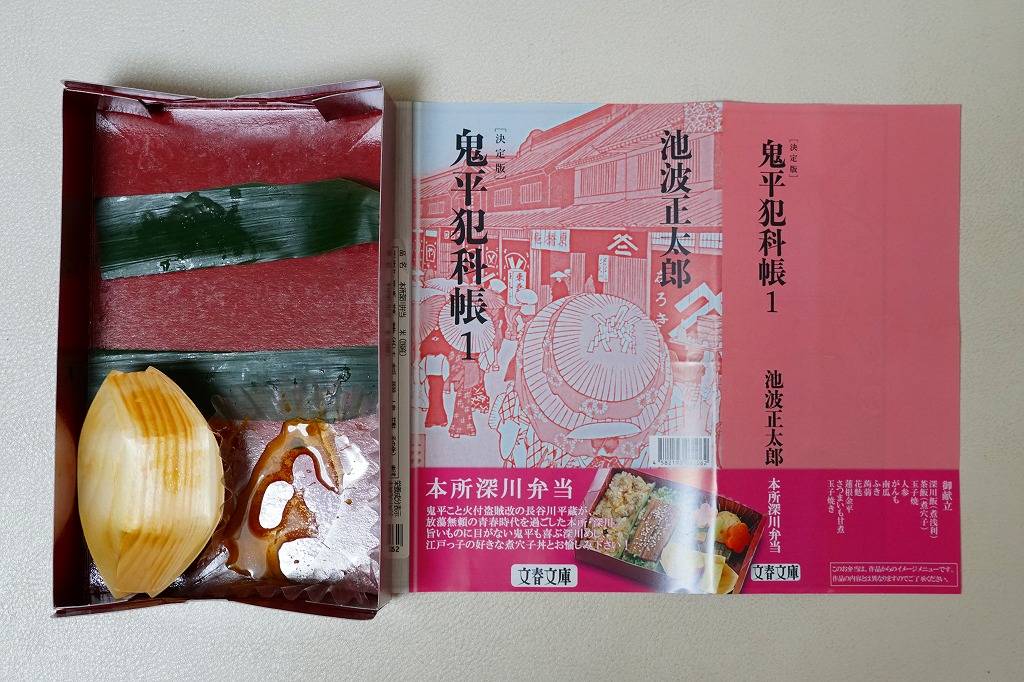 この「1」は「本所深川弁当」の名前が付き、その掛紙には文庫本の「鬼平犯科帳1」と同じ絵柄が使われる。裏面には「鬼平江戸全図」なる作品の舞台の地図があり、登場人物の相関図を別添する。中身は深川飯とするアサリ飯、江戸っ子の好きな煮穴子丼と記すアナゴ飯、煮物などのおかず。文庫本は全24巻なので、そこまでシリーズ化するのだろうか。2021年3月に「3」と「4」が出たので終売。