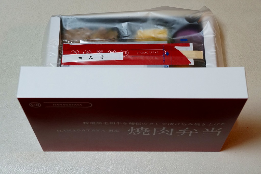 2020(令和2)年3月14日に、「一流料理人が作るバリュー弁当」の触れ込みで、「幕の内弁当」「海苔弁当」「ハンバーグ弁当」とこの「焼肉弁当」の4種類が、赤いパッケージと940円で発売されたもの。これは「神田明神下・雅 総料理長一押し」なのだとか。白飯をタマネギと牛肉で覆い、野菜コロッケ、エビフライ、スパゲティ、焼売、肉団子、玉子焼、ごまわかめ、柴漬けを添える。焼肉弁当を名乗るほど、肉に量や味があるわけではない、牛肉幕の内駅弁。2021年限りでシリーズごと、ひっそりと終売か。