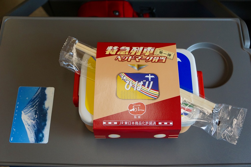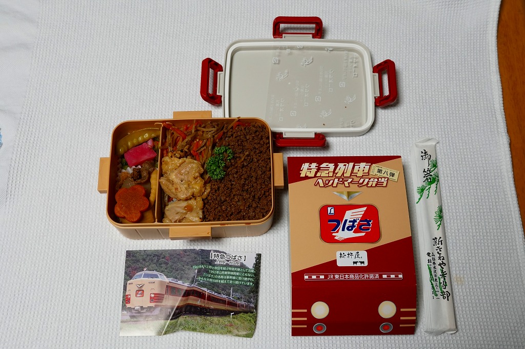 2020(令和2)年3月14日にJR東日本リテールネットが、東京駅の弁当売店「HANAGATAYA」、上野駅の弁当売店「膳まい」、水戸駅と勝田駅のコンビニ「NewDays」で発売した、特急列車ヘッドマーク弁当の第12弾。この頃は新型コロナウイルスの蔓延が日本国内でも起こり、4月には政府が緊急事態宣言を発令、メディアを占領し旅行客が消えた中で発売を見逃し買い逃していたら、翌年1月の駅弁大会で復刻販売してくれた。