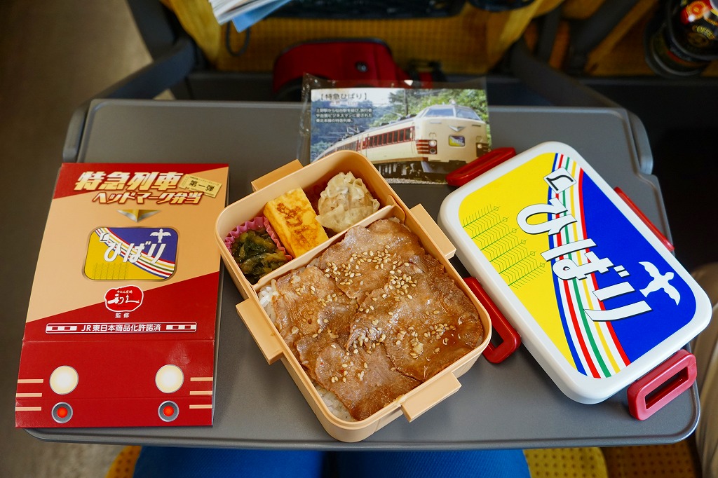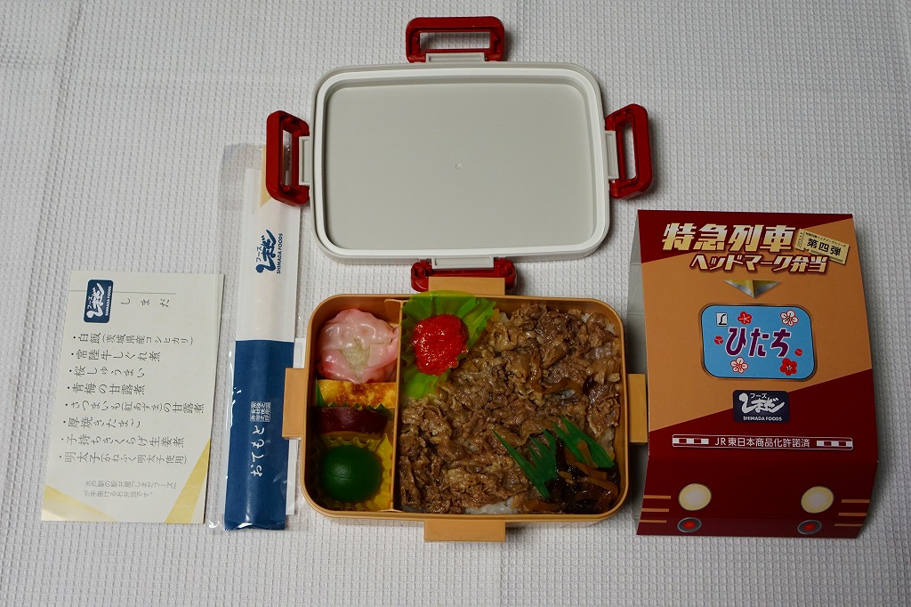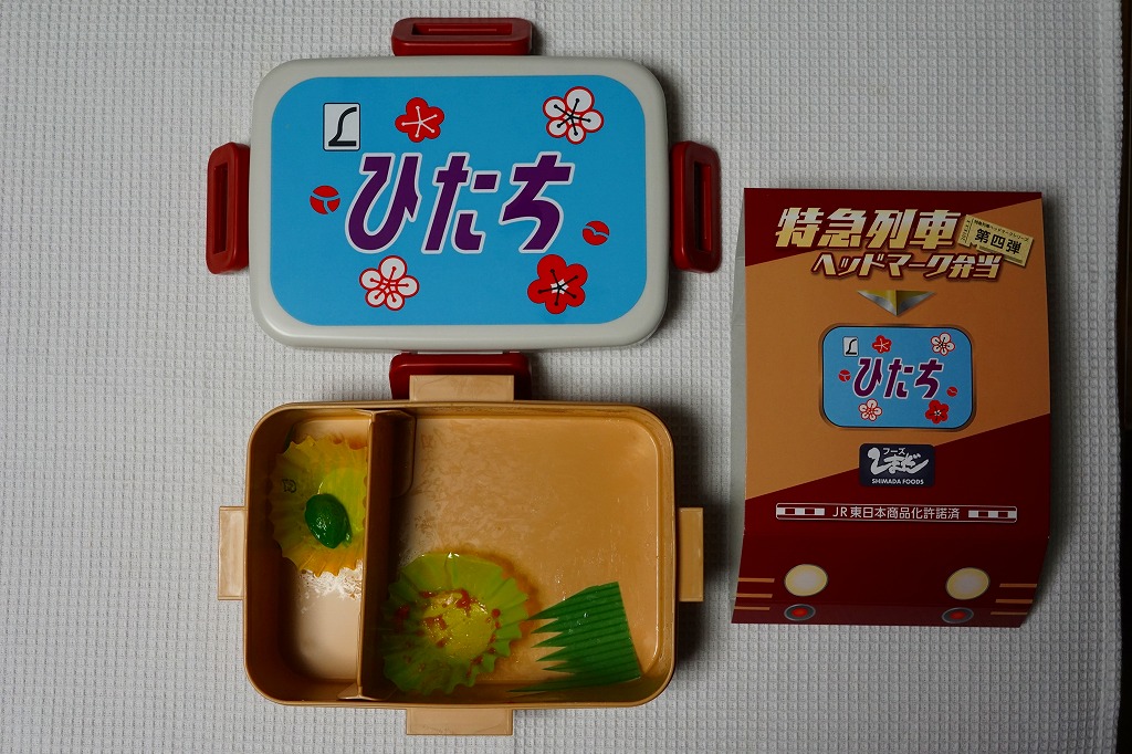 2018(平成30)年2月5日にJR東日本リテールネットが、東京、品川、上野、大宮、蒲田の各駅の弁当売店「膳まい」と水戸駅と勝田駅で発売した、特急列車ヘッドマーク弁当の第4弾。1998(平成10)年まで上野駅と水戸駅などを結んだ特急列車「ひたち」のヘッドマークの絵柄を、弁当箱の上面に印刷した。