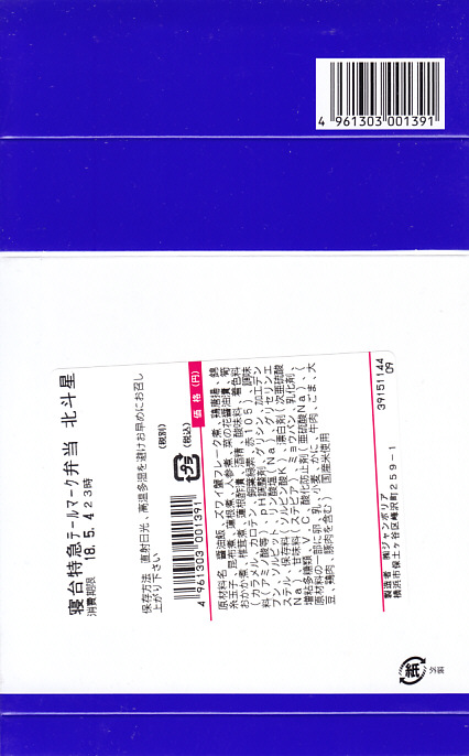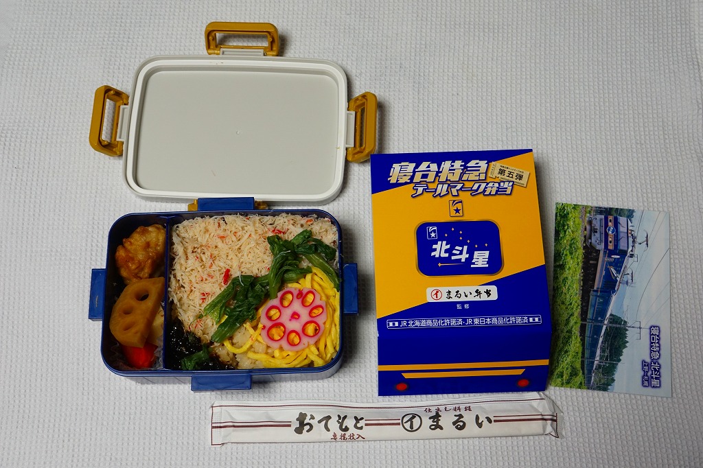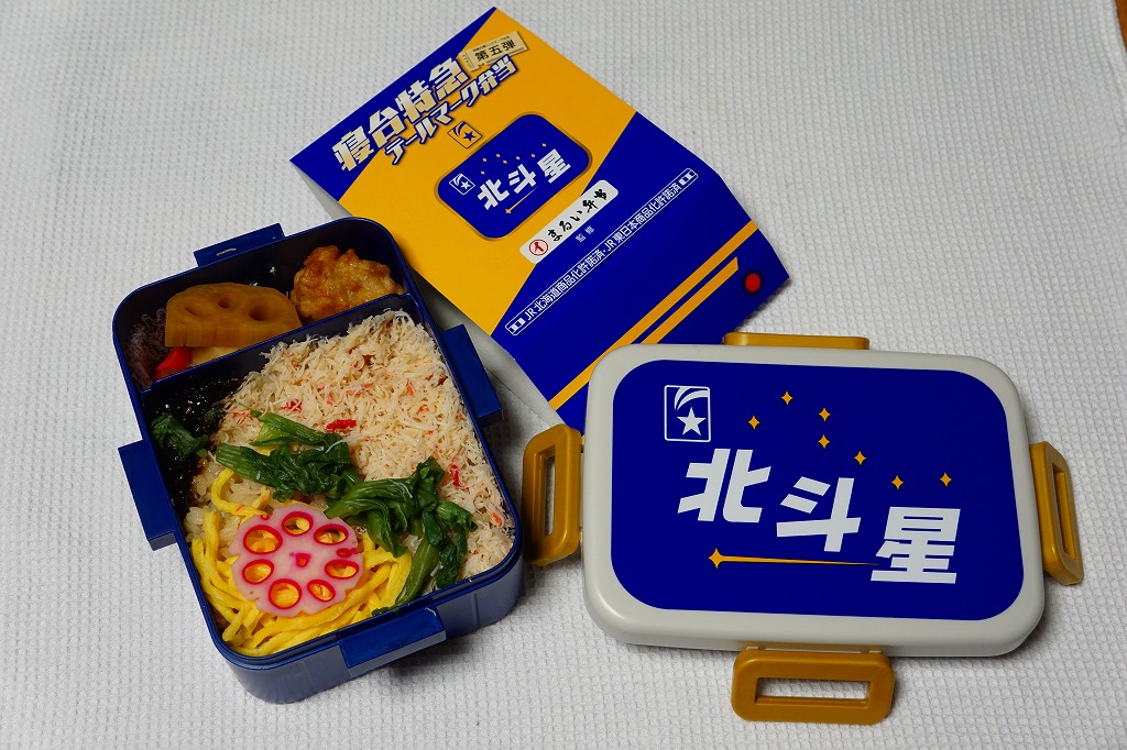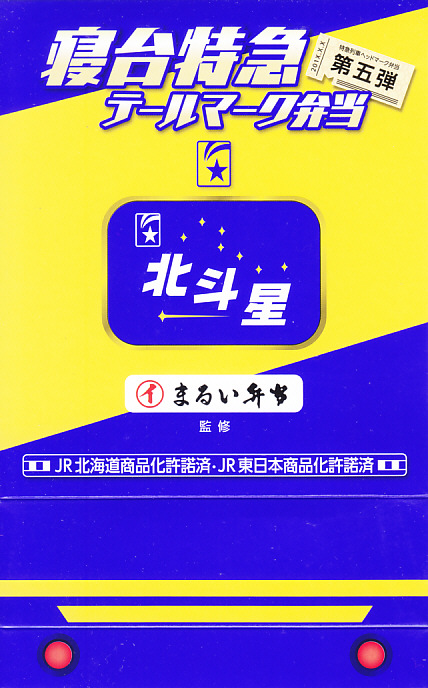 2018(平成30)年4月20日にJR東日本リテールネットが、東京、品川、上野、大宮、蒲田の各駅の弁当売店「膳まい」と仙台駅で発売した、特急列車ヘッドマーク弁当の第5弾。今回は2015(平成27)年まで上野駅と札幌駅を結んだ寝台特急列車「北斗星」のテールマークの絵柄を、弁当箱の上面に印刷した。これに伴い表題を「特急列車ヘッドマーク弁当」から「寝台特急テールマーク弁当」に変更している。
