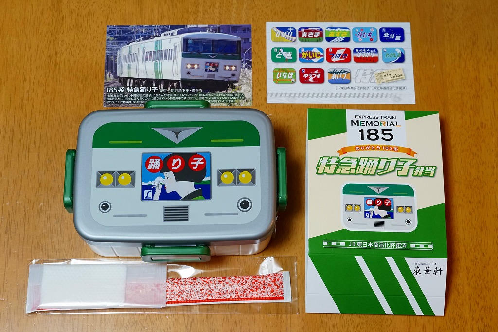 2021(令和3)年3月13日にJR東日本リテールネットが、東京駅の弁当売店「HANAGATAYA」と品川、上野、蒲田の各駅の弁当売店「膳まい」で発売。特急列車ヘッドマーク弁当と同じ形と値段を持つが、このシリーズの弾数に含まれていない。この日のJRグループのダイヤ改正での、特急「踊り子」からの185系特急形電車の引退を記念して発売された。東京と伊豆半島を結ぶ列車のヘッドマークに、ヘッドマーク周りの185系電車の構造を含め、弁当箱の上面に印刷した。
