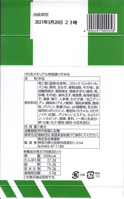 2021(令和3)年3月13日にJR東日本リテールネットが、東京駅の弁当売店「HANAGATAYA」と品川、上野、蒲田、大宮の各駅の弁当売店「膳まい」で発売。特急列車ヘッドマーク弁当と同じ形と値段を持つが、このシリーズの弾数に含まれていない。この日のJRグループのダイヤ改正での、185系特急形電車の定期運行の終了を記念して発売された。