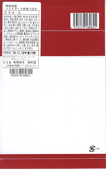 2018(平成30)年11月14日にJR東日本リテールネットが、東京、品川、上野、大宮、蒲田の各駅の弁当売店「膳まい」で発売した、特急列車ヘッドマーク弁当の第8弾。今回はかつて上野駅と秋田駅を結んだ在来線特急列車「つばさ」のヘッドマークの絵柄を、弁当箱の上面に印刷した。