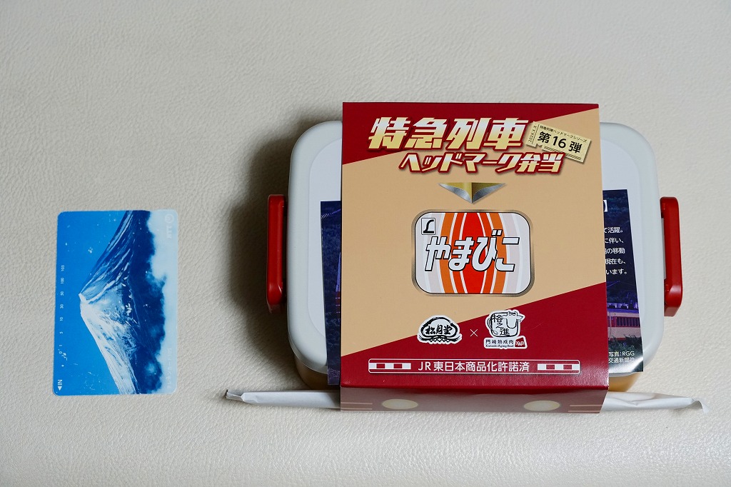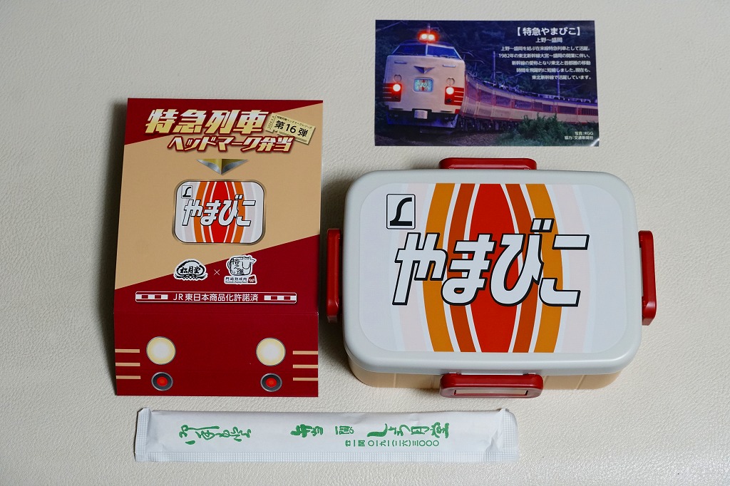 2022(令和4)年7月15日にJR東日本クロスステーションが、東京、上野、蒲田、大宮の各駅の弁当売店「HANAGATAYA」などで発売した、特急列車ヘッドマーク弁当の第16弾。今回は容器と値段を2020年10月発売の第13弾「あいづ」のタイプに戻し、その容器のふたとスリーブに特急やまびこのヘッドマークをプリントした。