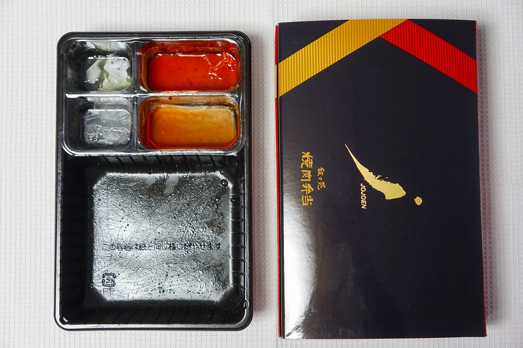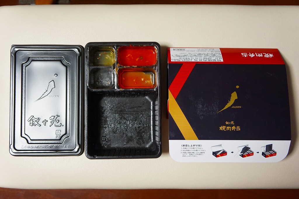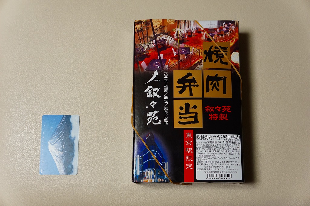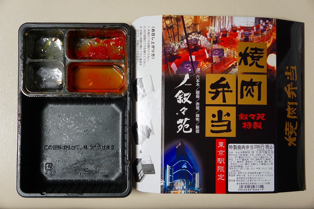 2016(平成28)年5月28日に購入した、東京駅弁のパッケージ。焼肉店の店内と外観の写真を掲載した、叙々苑特製焼肉弁当史上最も派手なデザインだったと思う。中身は発売当時も上記の2017年のものも、容器の構造を含めて変わらない。