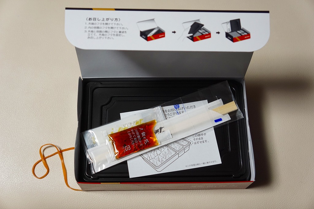 2017(平成29)年3月14日に購入した、東京駅弁のパッケージ。上記の2019年のものと、紙箱や内容器や中身や値段や味は変わらない。当時はグリコ「ブレオ」の添付がなく、食品表示ラベルは紙箱に貼付し、商品名のプラ帯がなかった。