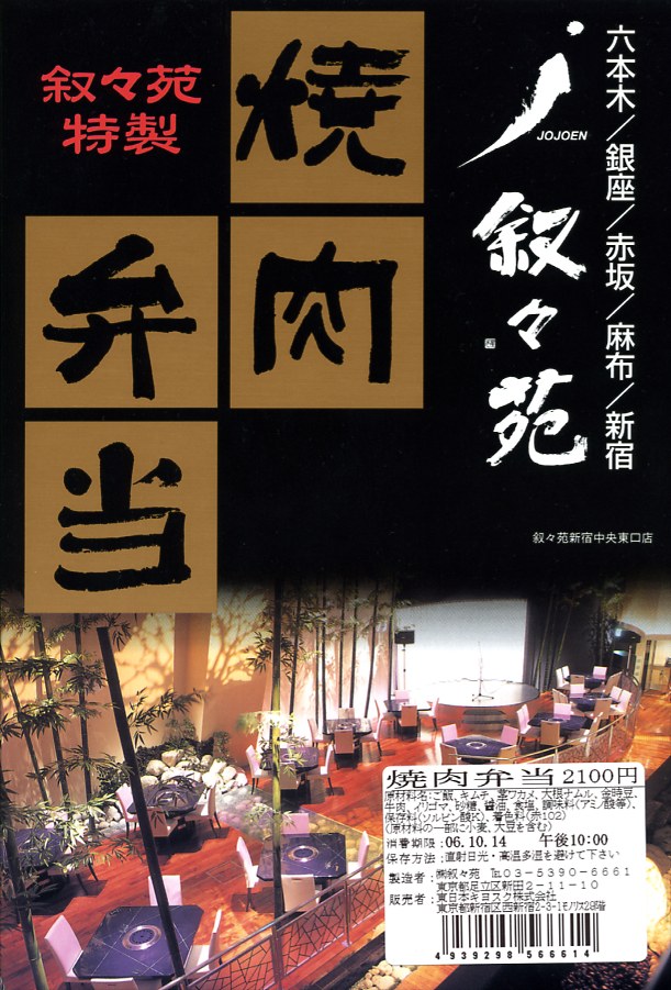 2015(平成27)年の発売か。上記の「叙々苑特製焼肉弁当」の廉価版と考えられる。容器は共通で、中身もほぼ共通で、中身の霜降り牛カルビが普通の牛焼肉になり、価格が約4割オフ。つまり、よくある牛肉駅弁を韓国風にしたもの。これでも値段も味も分量も、十分に高額で高級な牛肉駅弁。値段は1,400円、1,500円、1,600円と諸説ある。