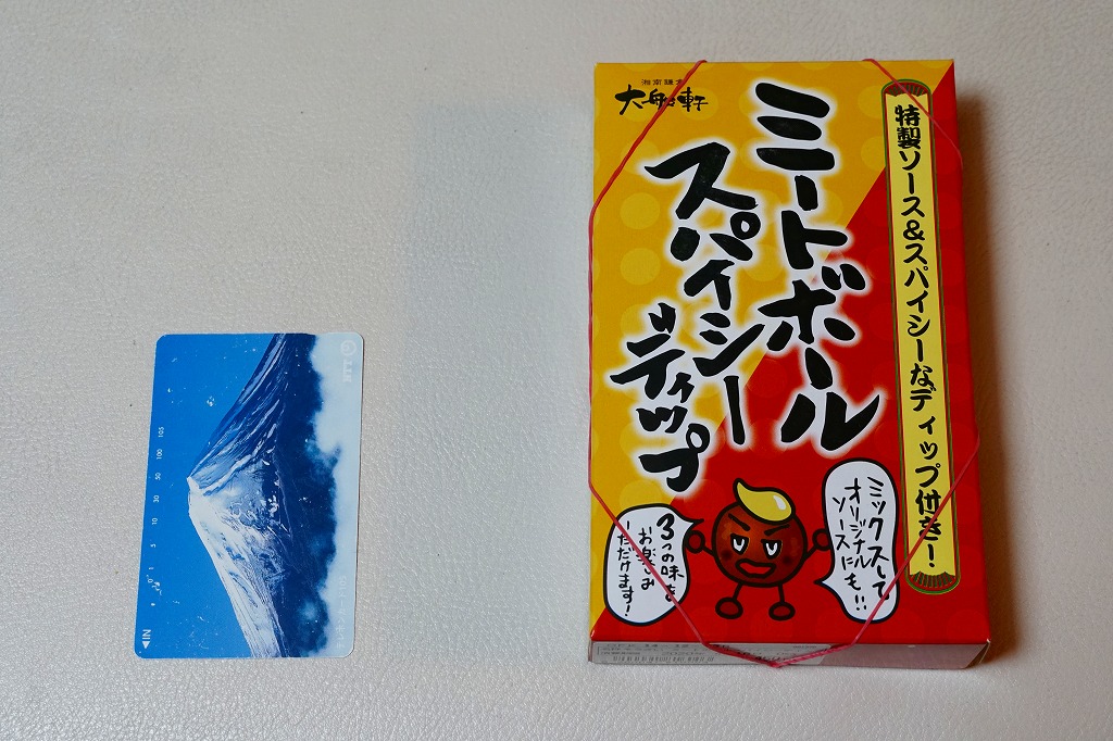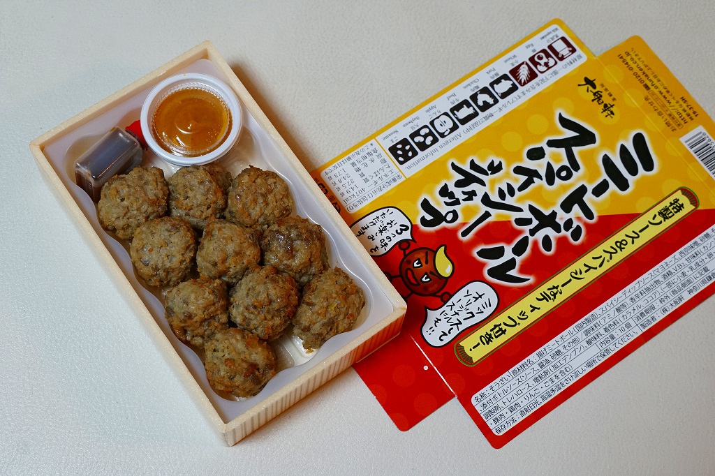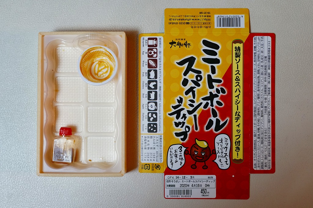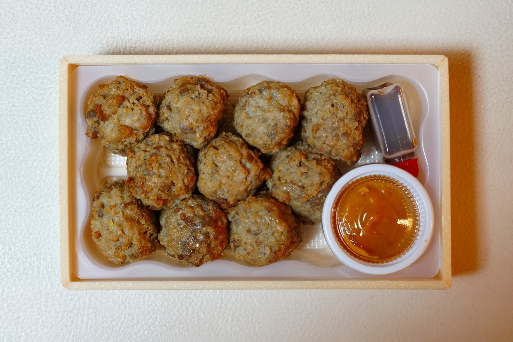 2019(令和元)年の秋までに東京駅の駅弁売店「駅弁屋 祭」で発売か。こんどのおつまみ商品は、小箱にとても小粒な揚げ肉団子10個に、惣菜サイズのソースボトルと、超激辛なマヨネーズ風ソースカップを詰めた。2種のソースの組合せで「3つの味をお楽しみいただけます!」とする。JR東日本グループ会社の事業再編という不思議な理由により、2021年3月限りで終売。