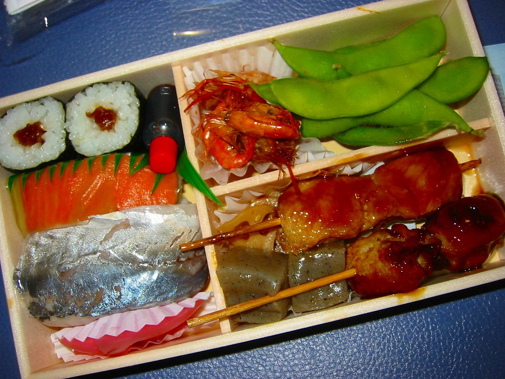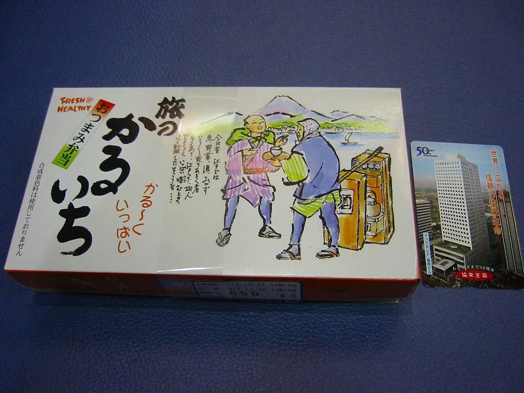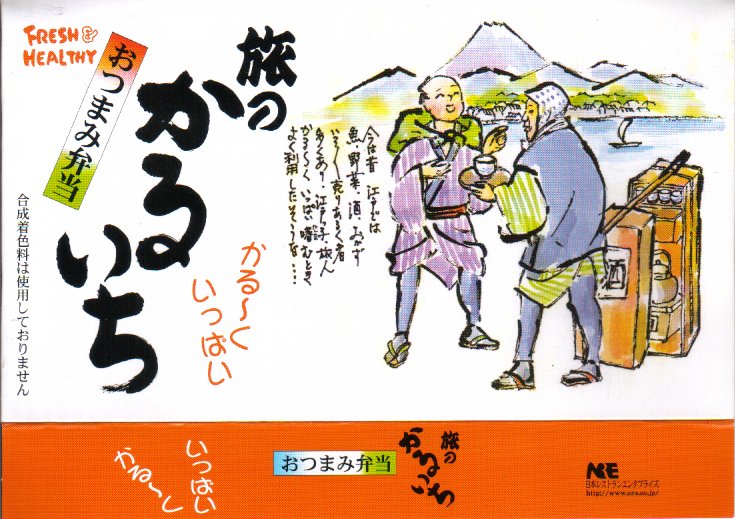 2002(平成14)年9月に発売したおつまみ駅弁。とても小さく浅い容器の中に、枝豆や川海老唐揚に焼鳥やつくねなど酒のつまみに適した食材が入っている。御飯物も鮭押寿司に鯵寿司にかんぴょう巻が入っているので、ミニ駅弁としての機能もある。幕の内弁当のような具だくさんの駅弁を酒のつまみとして購入している方もいるそうだが、ここはさすが大都市東京で、つまみ専門の駅弁が成り立っている。販売期間は、あまり長くなかった模様。
