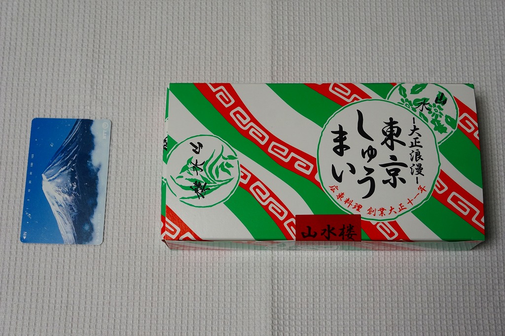 2017(平成29)年の秋に東京駅の駅弁売店「駅弁屋 祭」で発売された模様。調製元の山水楼とは、山梨県は小淵沢駅弁の丸政のことで、2010(平成22)年12月の駅弁売店「ニッポンの駅弁」開店以来の名称。専用の紙箱の中身は、焼売12個、しょうゆ袋、マスタード袋。これらをプラ製トレーごと透明フィルムで密封したお土産品。