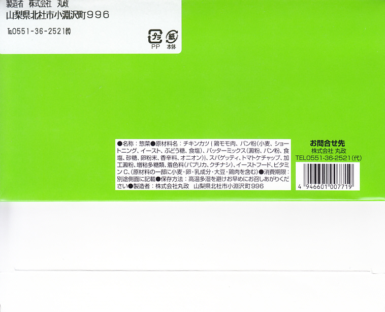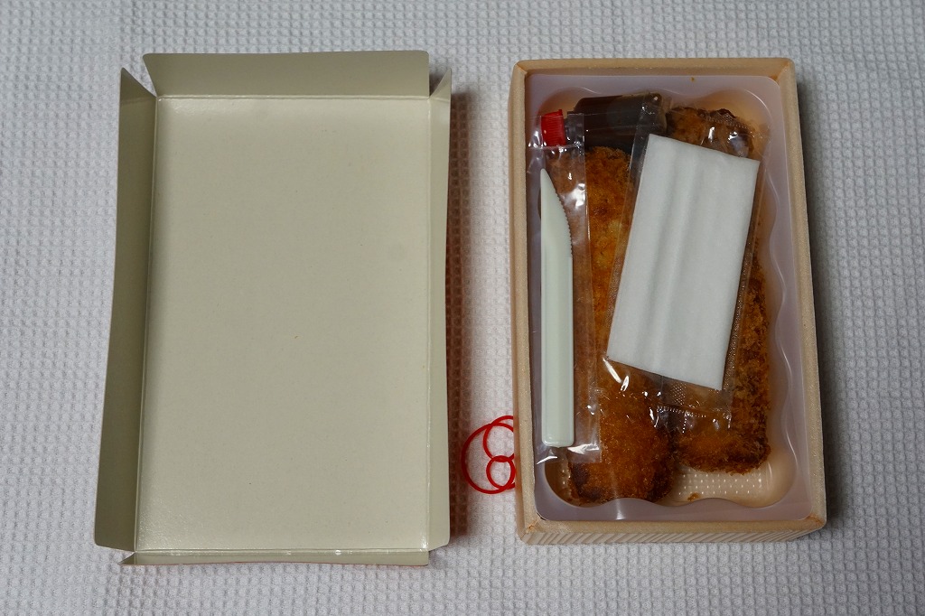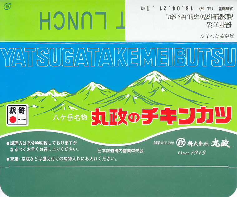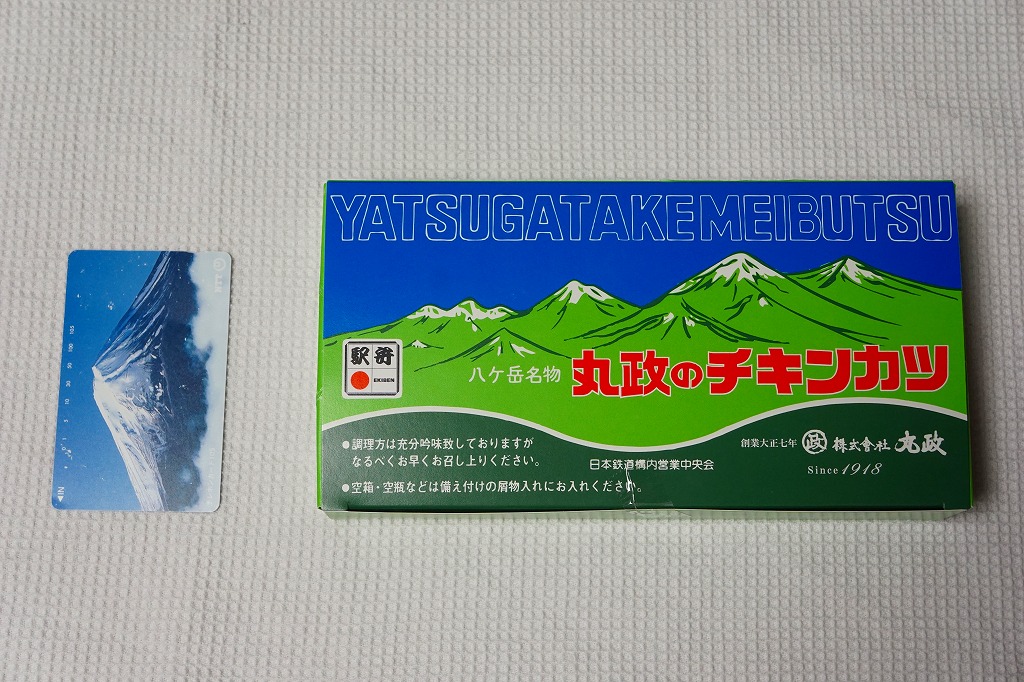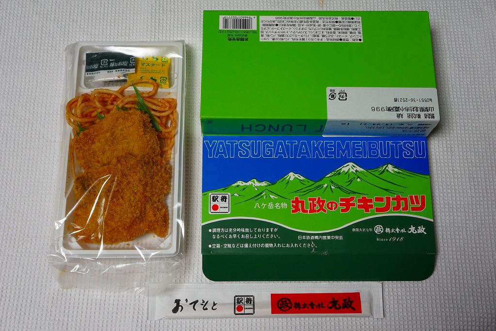 2017(平成29)年12月に東京駅の駅弁売店「駅弁屋 祭」で発売された模様。山梨県は小淵沢駅の名物駅弁「高原野菜とカツの弁当」のチキンカツを、スパゲティ、マスタード、塩とともに密封した商品。これを収める紙箱の絵柄は、小淵沢駅弁にそっくり。密封のせいか、野菜や御飯がないからか、味は湿って沈んでくすみがちで、弁当のときの味が出ていない印象は受けた。価格は2017年の発売時で600円、2024年時点で700円。