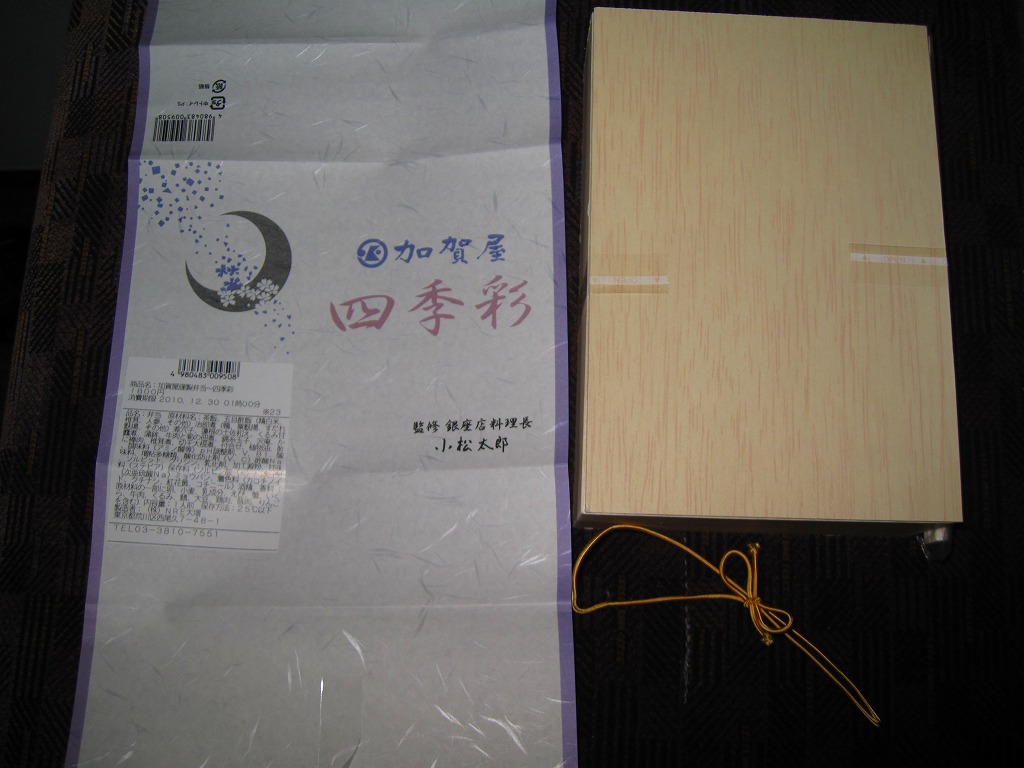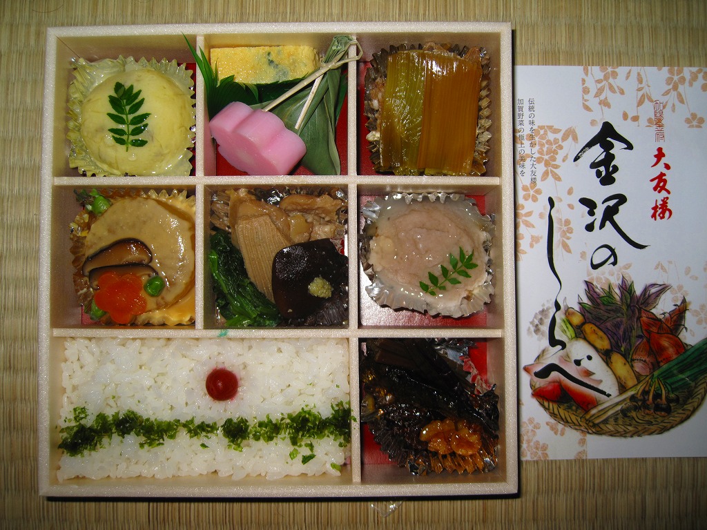東北新幹線新青森開業に合わせた、2010(平成22)年12月4日の東京駅構内食品街「グランスタダイニング」内「ニッポンの駅弁」の開業に伴い、同日にオープニングスタッフとして発売か。調製元は金沢駅弁の大友楼であるが、ここでは駅弁屋ではなく加賀料理屋として紹介されている。