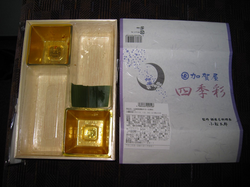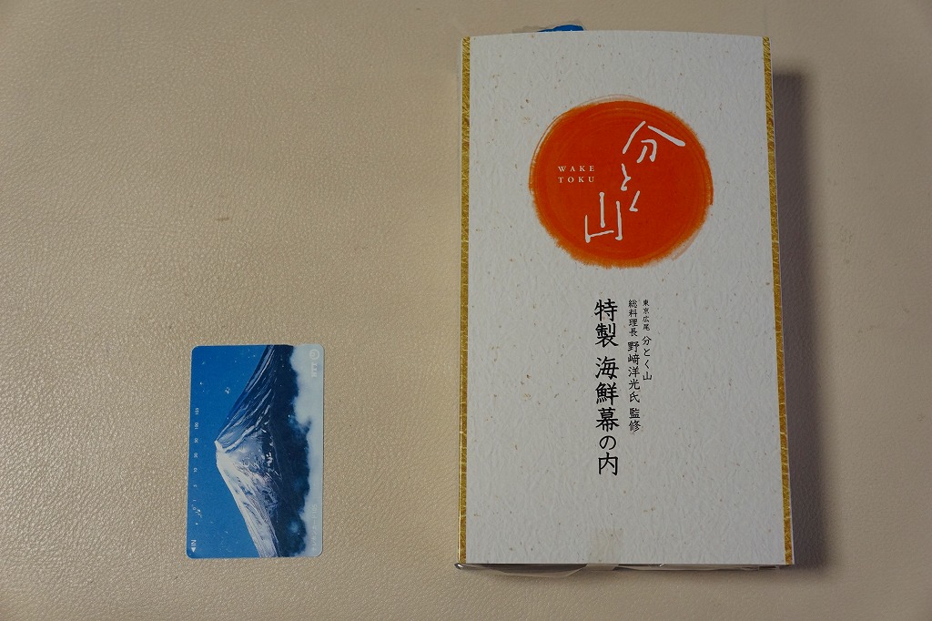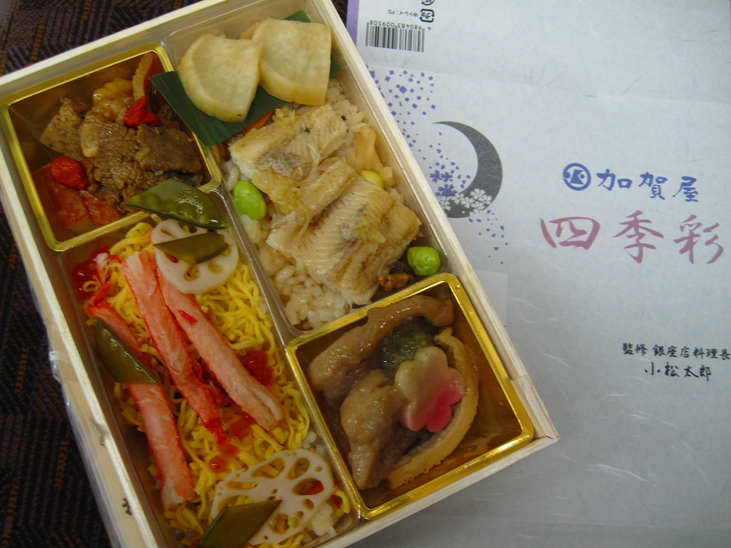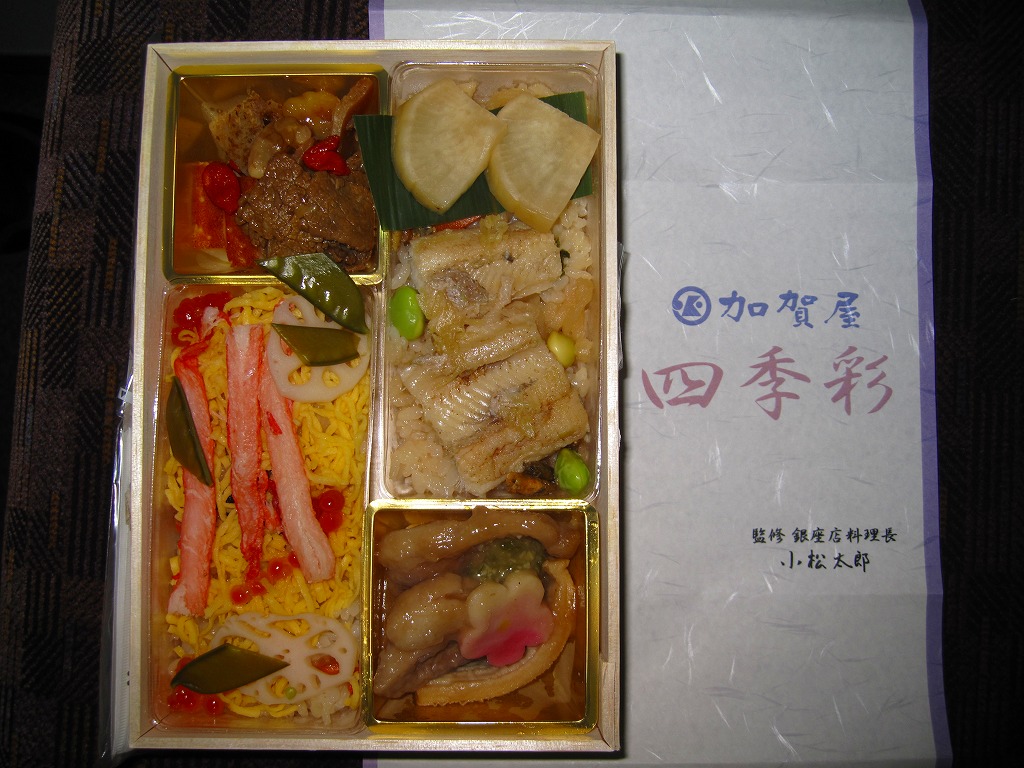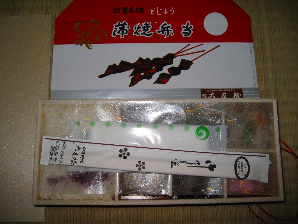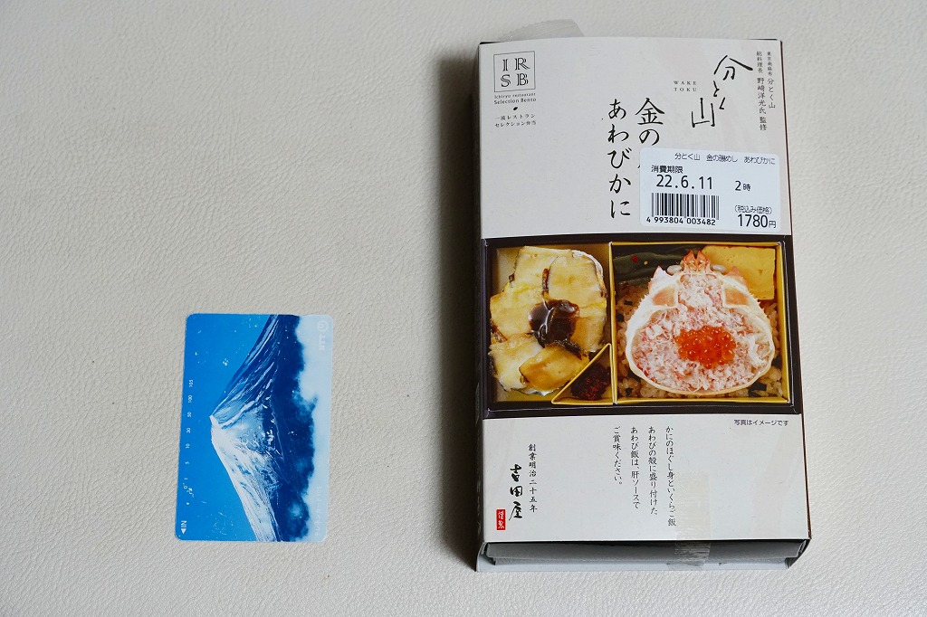 御飯の軟らかさが印象的。治部煮の採用も加賀を印象付ける。しかし食材毎のトレーを容器にはめこむスタイルは、それぞれの風味を生かす最上の方法なのだろうが、見た目には効率優先の機内食のようで、ここだけはちょっと減点。年内に終売か。