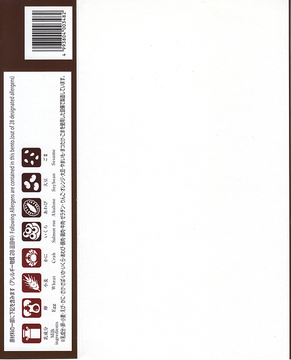 これも弁当そのものには何も書かれていないが、加賀野菜と金沢の郷土料理を盛り込んだという。すりつぶされたような柔らかさを持つ高級日本料理が、弁当箱に狭々と収められてしまっている印象。皿にひとつひとつ盛り付けたり、金沢旅行の旅先で食べれば、この値段の価値が分かりそうな気がする。年内に終売か。2018年までに金沢駅の調製元店舗で、同じ掛紙と似た中身を持つ弁当が売られるようになった模様。