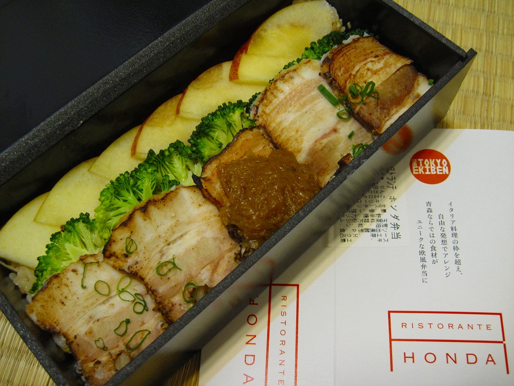 2012(平成24)年4月までに発売か。調製元は下記の商品「リストランテホンダ弁当」ともども、八戸駅弁の吉田屋。グランスタにもたくさんあるデパ地下タイプの高級惣菜弁当で使われているような容器を、ブランド名や商品名を書いた赤い紙箱に収める。