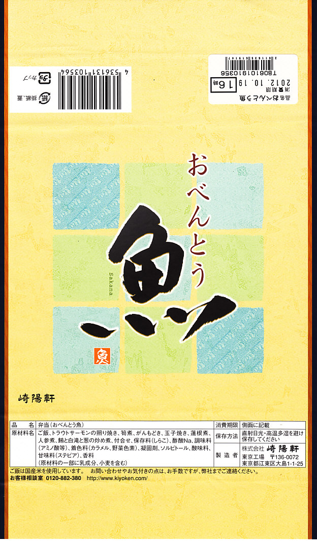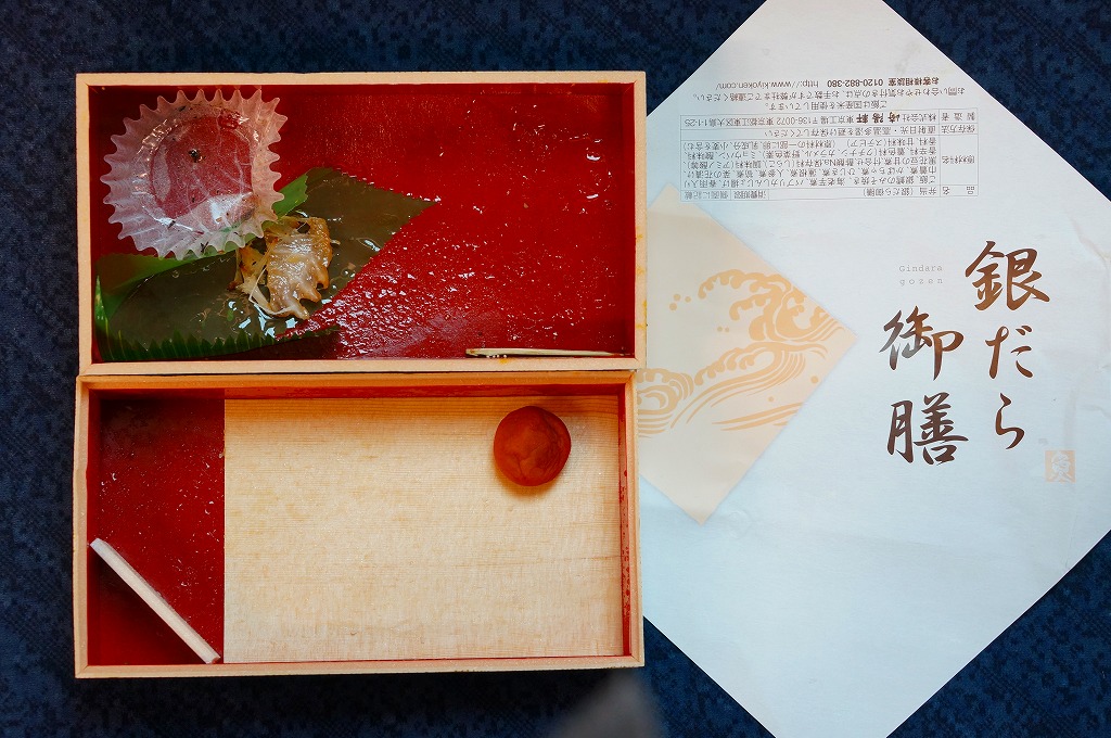 2014(平成26)年10月1日に東京地区で発売。真っ黒な二段重ねの容器の下段は日の丸御飯と菜の花、上段は大きな銀ダラのこうじ味噌焼に、ニンジンやカボチャなどの煮物、パプリカのしんじょう揚げ、ひじき煮など。駅でも売られるでパ地下タイプの高級弁当。2011年発売の「おべんとう魚」と同じく、崎陽軒の弁当なのにシウマイが入らないが、これは話題にはされなかった。