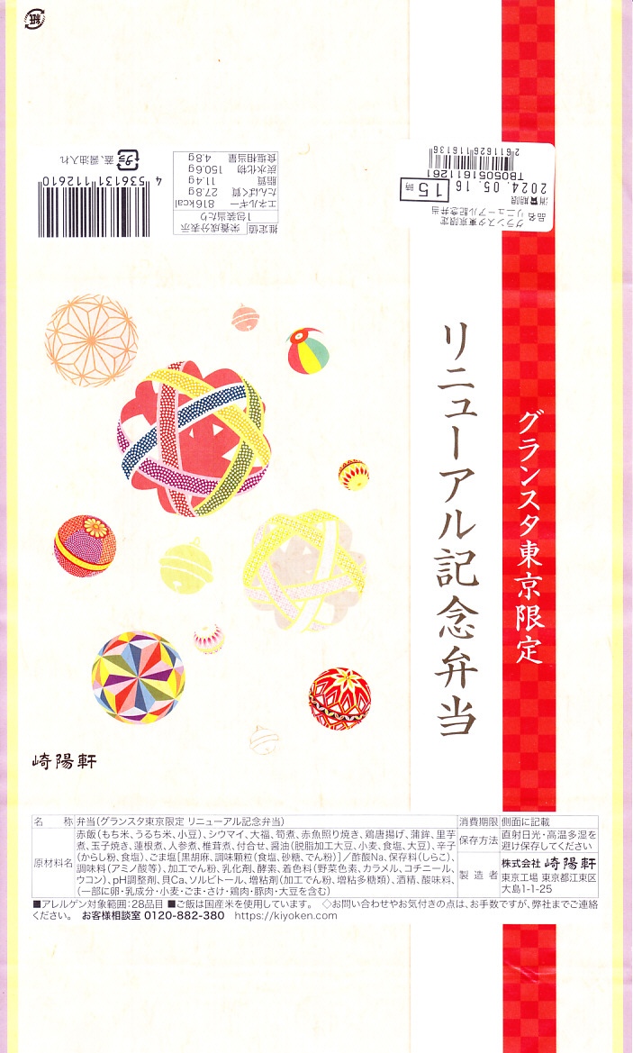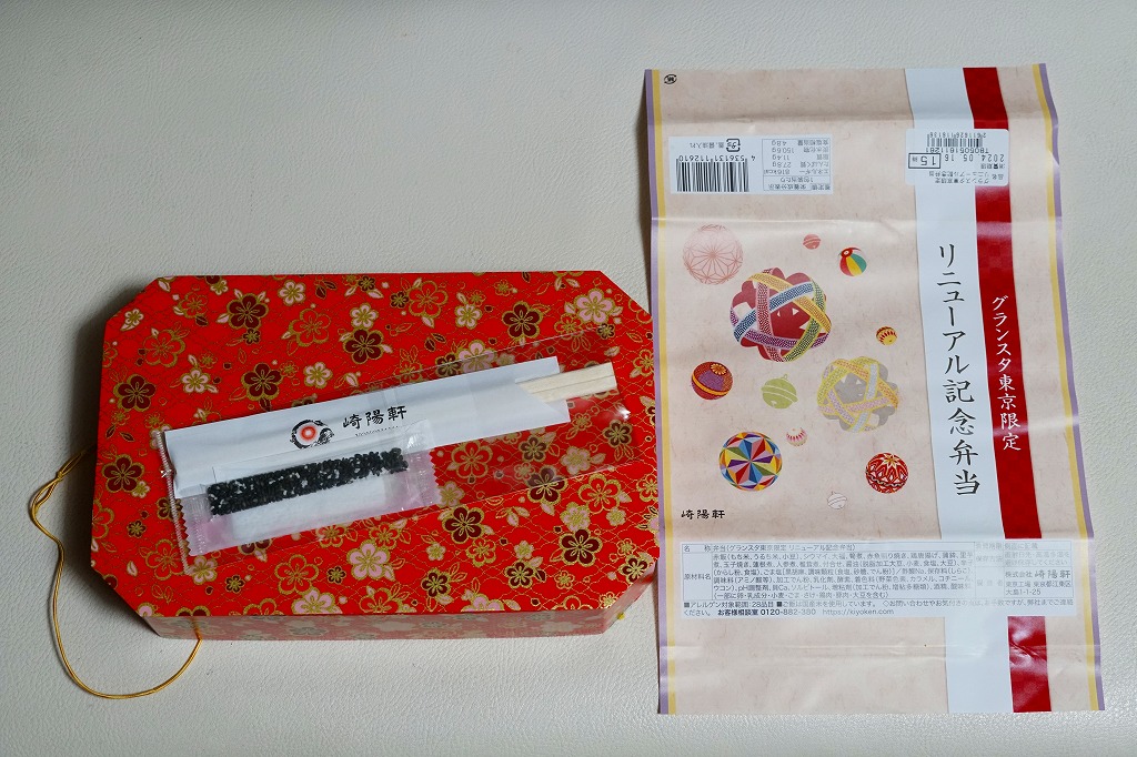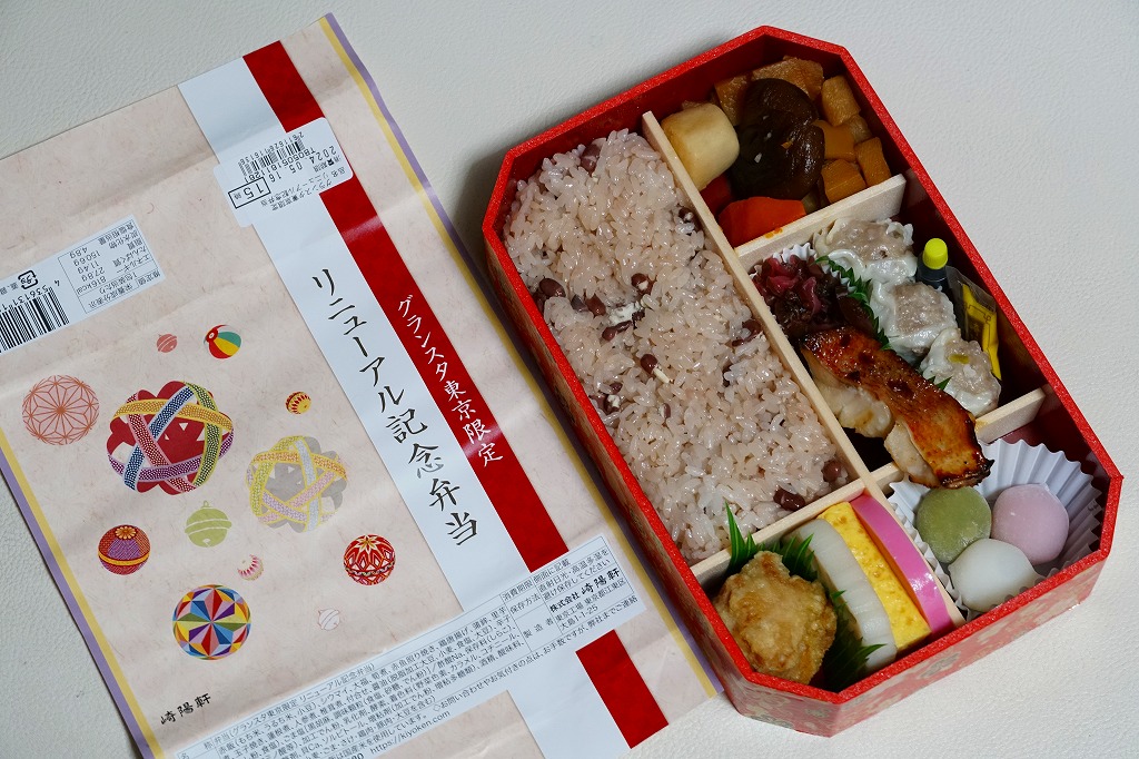 東京駅構内の商業施設「グランスタ」の、改札内地下1階「スクエアゼロエリア」のリニューアルオープンに合わせて、2024(令和6)年4月24日にエリア内の調製元店舗で発売、ゴールデンウィーク期間中を除く5月末まで販売。2018年10月にここへ後から入居した崎陽軒は、このリニューアルでメインの通りからエスカレーター下で天井の低い、倉庫にするような場所へ追いやられてしまったが、その知名度により客はちゃんと来ていた。