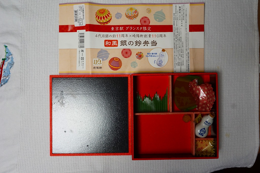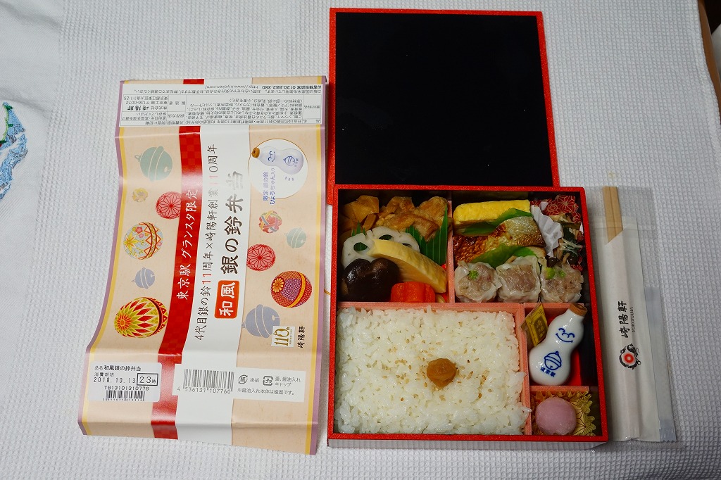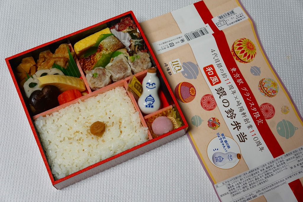 中身は日の丸御飯に、鶏唐揚やタケノコ煮その他の煮物や、玉子焼や焼き魚やシウマイ3個やミニ大福など。それらは崎陽軒の既存の横浜駅弁から引用されたもので、味も同じ。弁当なのに珍しく、磁器の醤油入れ「ひょうちゃん」が入り、ここにも銀の鈴が描かれていた。2019年に「4代目銀の鈴11周年×崎陽軒創業110周年」の表記を外し、2020年に「和風」の名前を外して中身を大幅にリニューアルしたが、2020年内には終売か。
