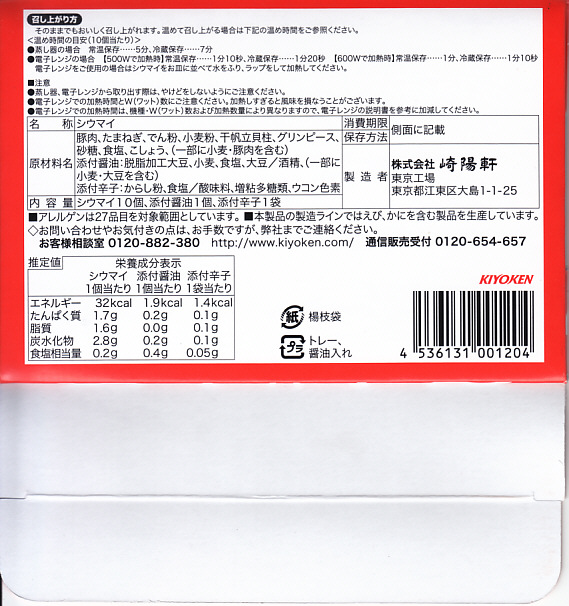 中身は最近の表現を使えば、これはまるでメガシウマイ弁当。シウマイは大きな特製版に、玉子焼の厚みは3倍に、鶏唐揚も弁当サイズが2個、タケノコ煮も3倍増、マグロ照焼もなんとなく大きく、通常版のアンズがとても小さく見える。味は東京工場版シウマイ弁当と同じ。この内容を横浜で駅弁にしたら、どんな見栄えになるのか想像するだけで楽しい。