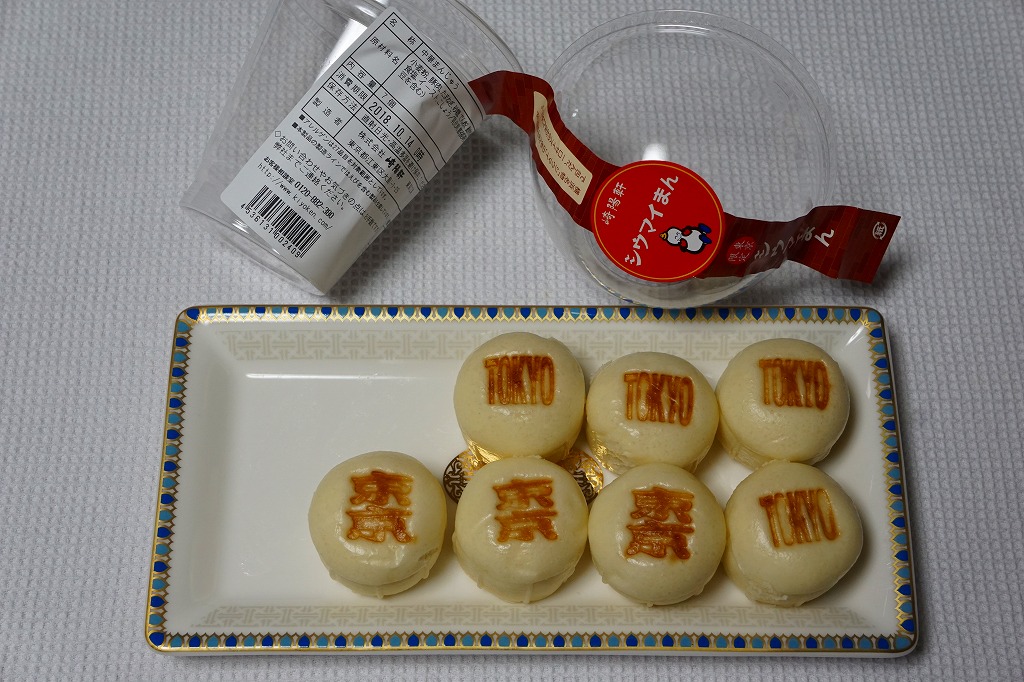 崎陽軒の東京駅「グランスタ」地下1階の食品売り場での店舗の開業を記念し、2018(平成30)年10月1日に「東京限定」で発売。中身や味は横浜で既存の「シウマイまん」と同じ。7個の焼き印が「東京」や「TOKYO」になり、容器がコーヒーやスイーツで使われるおしゃれなものになり、これに商品名や食品表示のラベルを貼った。シウマイを饅頭の皮で包んだ、奇抜な軽食。