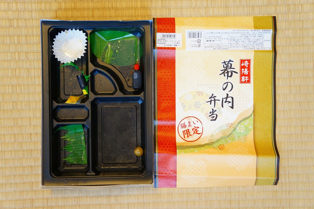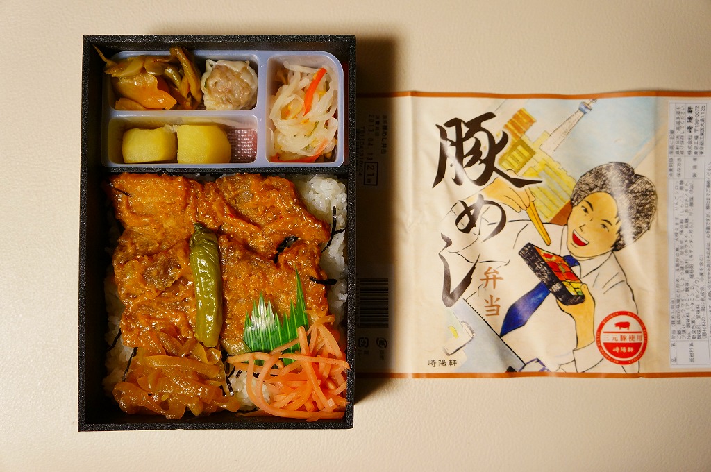 横浜駅弁の崎陽軒が東京都内で販売する幕の内弁当。上野駅のコンコースや羽田空港の搭乗待合室の売店などで見掛けている。ボール紙の箱に黒いトレーを入れて、俵飯に鮭塩焼や鶏肉甘煮に蒲鉾や煮豆など、そして横浜駅弁の代表であるシウマイとタケノコ煮を入れる。味は横浜駅弁と同等でこの値段なのでお得感が高い。実は横浜駅弁の500円代の幕の内弁当にシウマイは入っていない。この内容と姿では、いつまで売られたのだろうか。