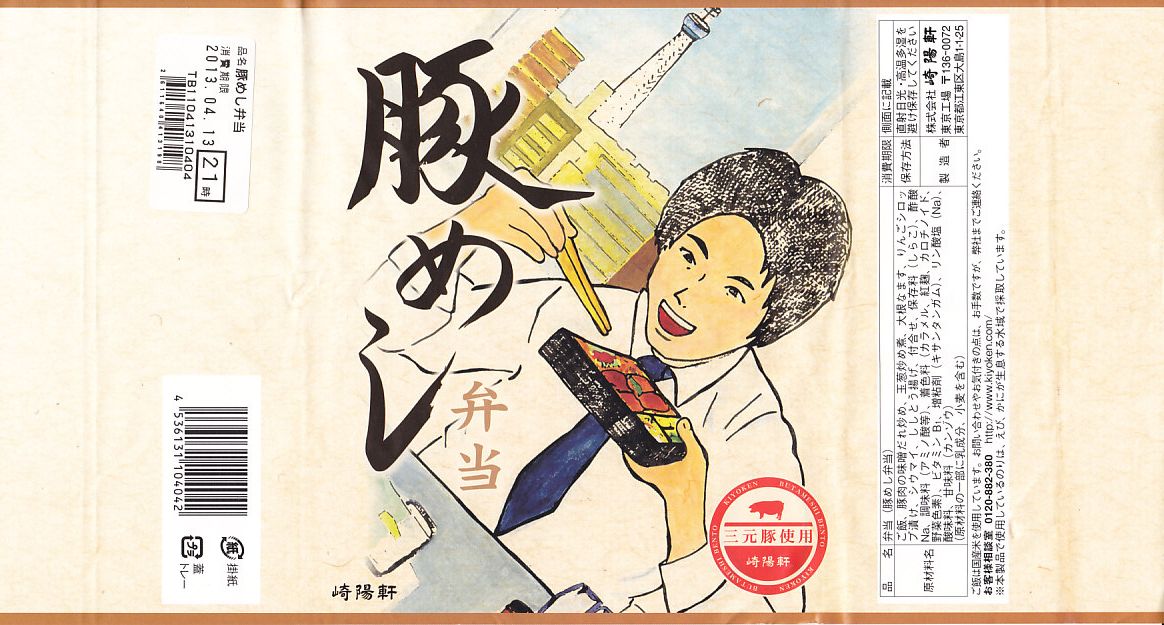 2013(平成25)年3月18日に東京地区で発売。イケメンがオフィスでこの弁当を食べている、微妙なイラストの掛紙を黒い容器に巻く。中身は白御飯に三元豚の味噌だれ炒めを載せ、タマネギ炒めと紅生姜とししとうも置き、大根なます、ザーサイ、リンゴのシロップ漬、シウマイ1個を添えるもの。味は刺激的でなく柔らかいが、飯を進めるコテコテの味。2014年4月の消費税率改定を機に終売か。